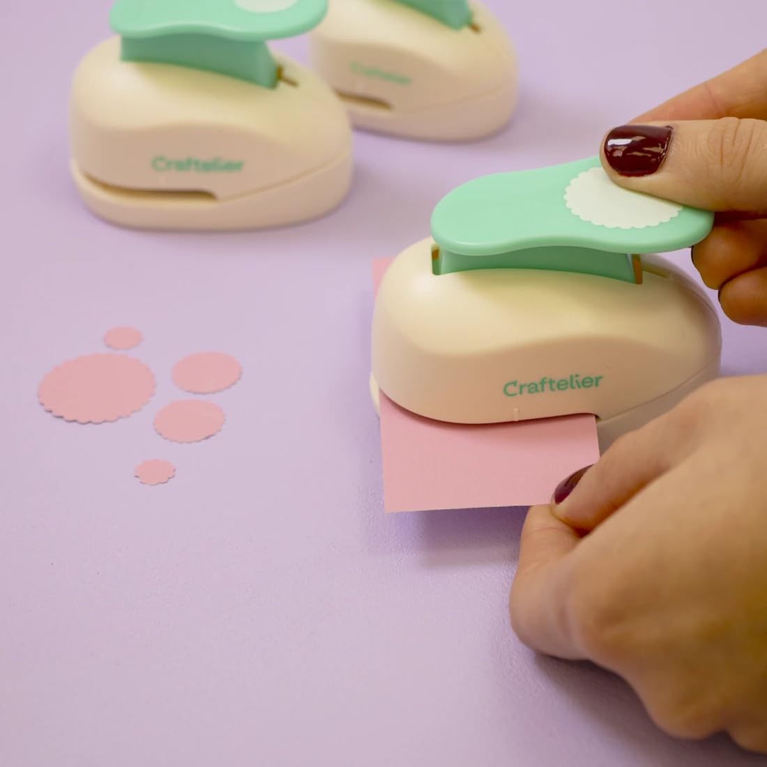 Craftelier - Circle Scallop Punch Set | 3/8", 5/8" & 1" Shape Scalloped Hole Puncher for Paper Crafts | Round Scalloped Hole Punch for Scrapbooking, DIY Cards & Journals | Craft Punch Set for Paper