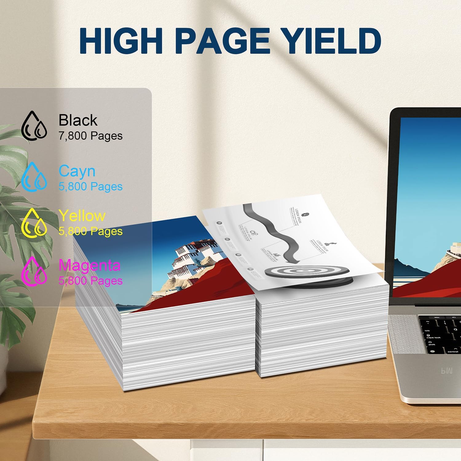 - High Page Yield: Up to 7800 pages for each pack of 210X W2100X black toner cartridge, and 5800 pages for each color toner W2101X W2102X and W2103x, which is suitable for high volume printing demand applications (at 5% coverage of A4)