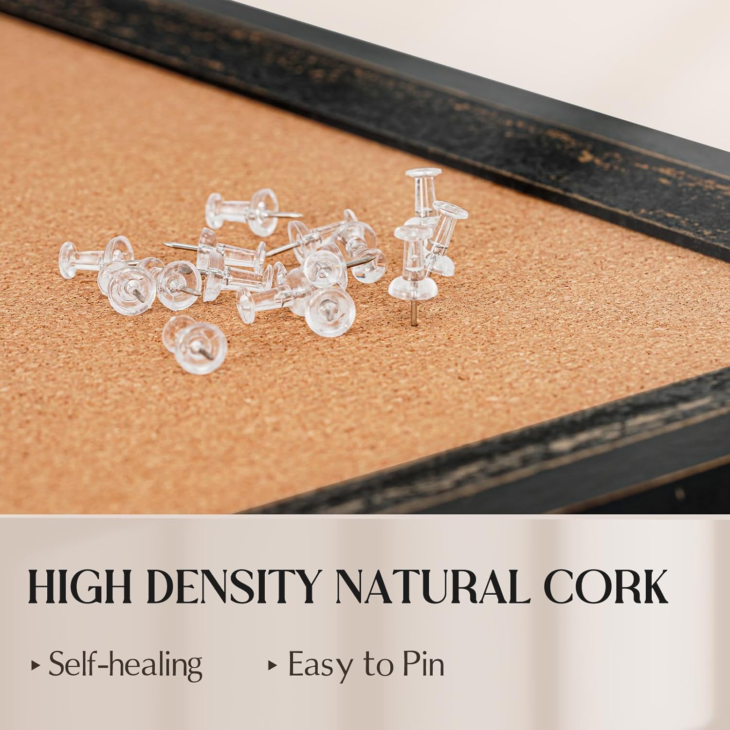 Cork Board Bulletin Board - 24" x 18" - Rustic Black Frame Corkboard for Wall - Decorative Pin Board, Message Board, Vision Board, Picture Board, Photo Board