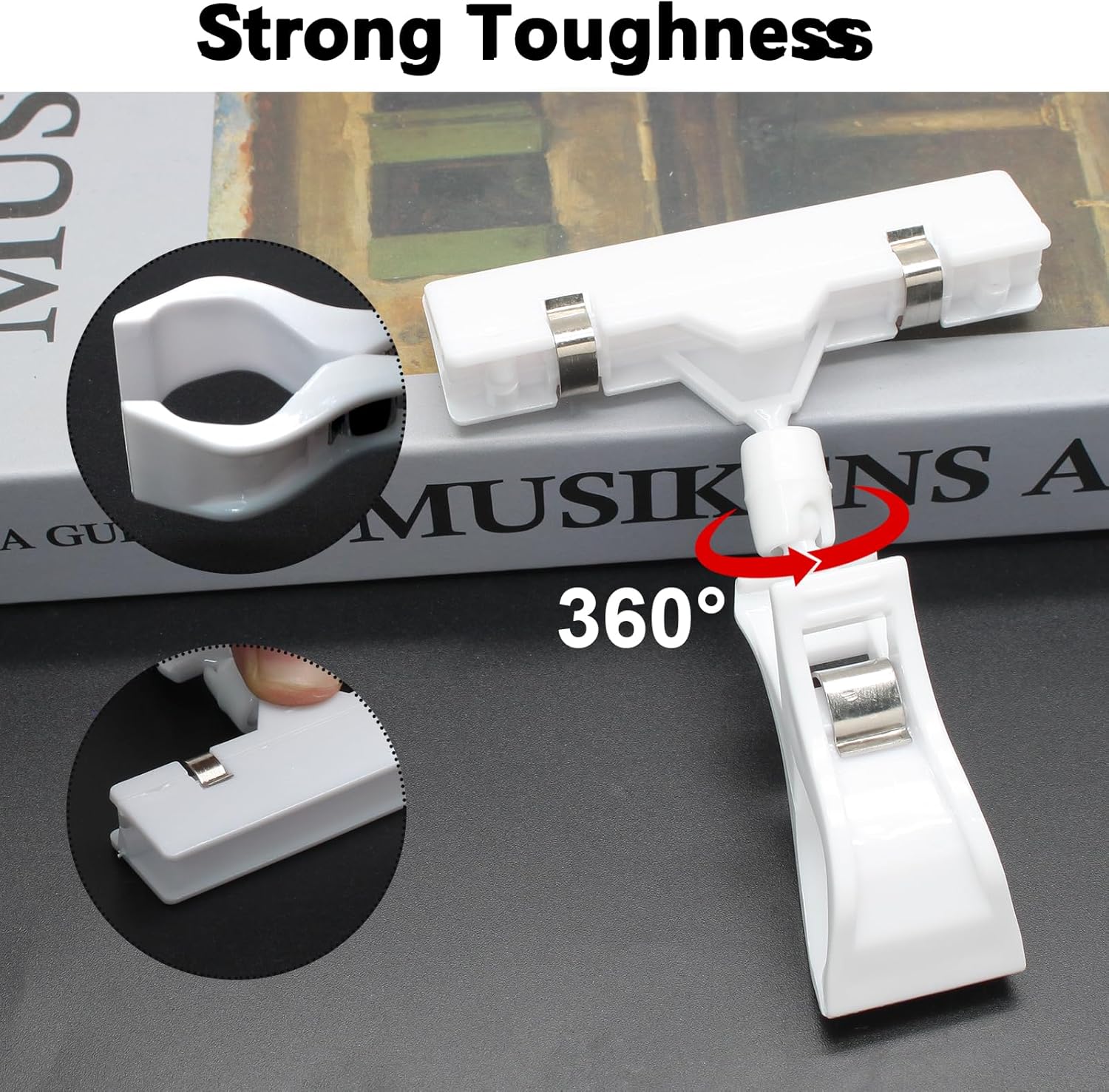 - Quality Material: Made of premium plastic, which is waterproof, strong, reliable, and not easy to tear and damage. The label clip is very flexible and can be bent and rotated 90 degrees in each direction for the complete presentation.