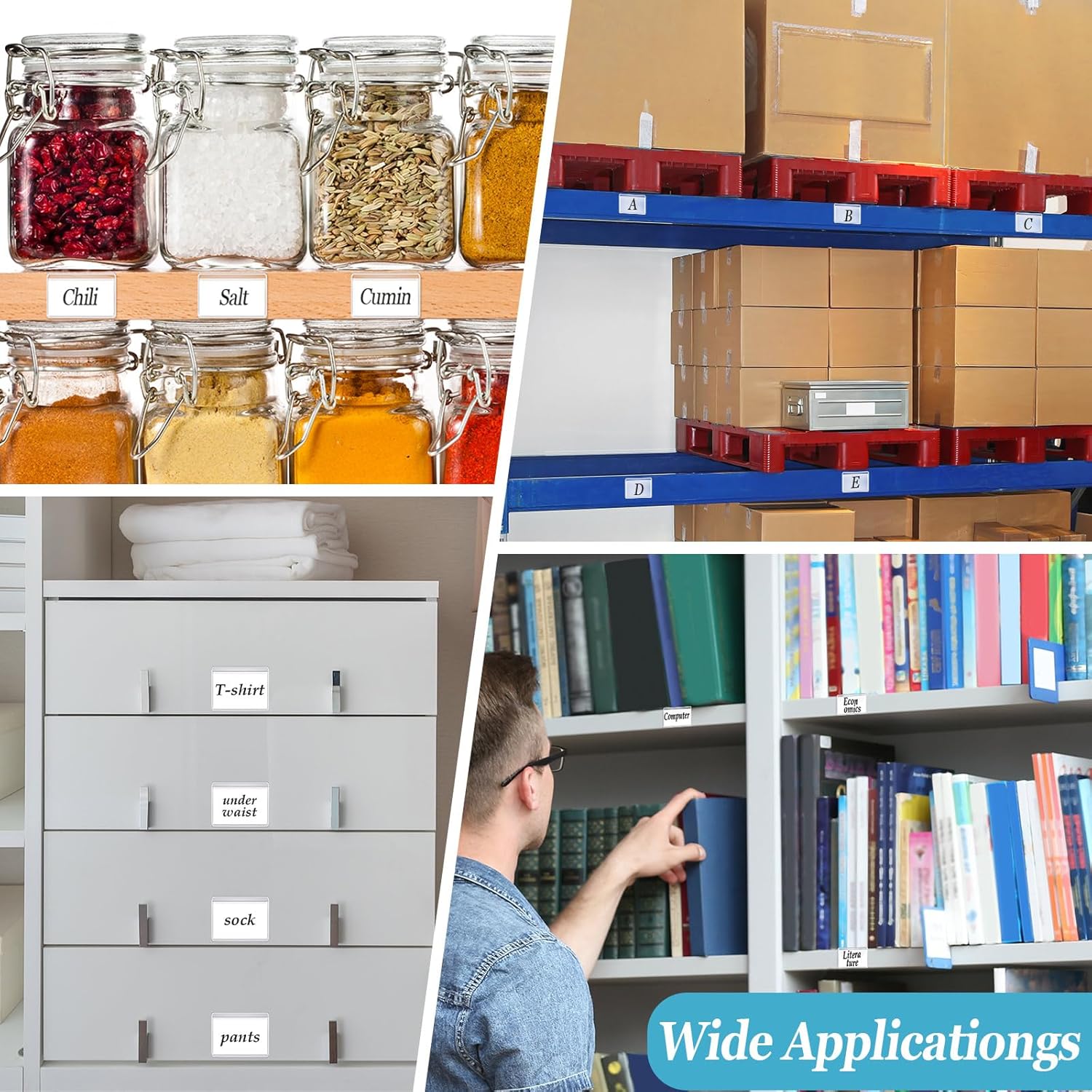 • Convenient to Use: plastic label holder is designed in transparent color with self adhesive back, so you just stick the label holder anywhere you want and put the appropriate label paper into the plastic label holder, then you can easily sort the items