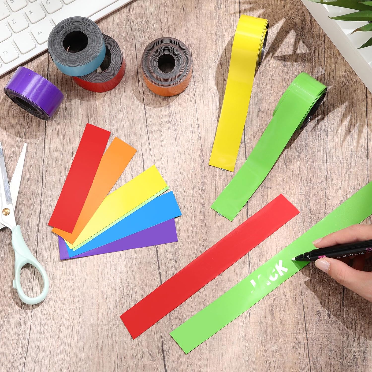 - Rainbow Colors: including 6 rolls of rainbow color dry erase magnetic strips namely red, orange, yellow, green, blue, and purple; Each roll is approximately 2 inch wide and 9.8 feet long, making these strips ideal for everyday use and replacement needs; You can also share them with colleagues and friends, using them in different settings like classrooms, schools, offices, workshops, kindergartens, garages, and homes