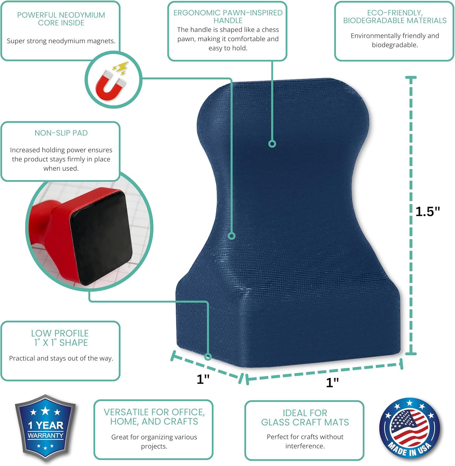 Glassboard Studio MiniPawn Magnet - Strong Neodymium Rare Earth Magnets for Fridge, Whiteboard, Locker & Magnetic Glassboards - Ideal for Crafting & Office Use - Strong Fridge Magnets (Navy Blue, 2)