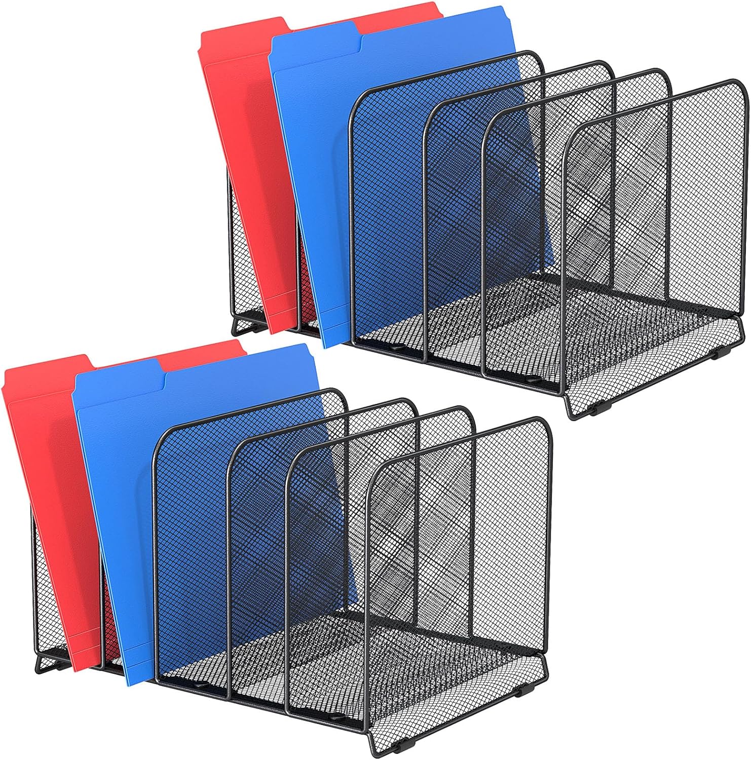 5 Sections Desk File Holder/Rack/Sorter,Mesh File Organizer,File Folder Organizer,Metal Upright Desktop Organization for Documents,Magazine,Kitchenware,Antiskid,Antirust,Sturdy,2 Packs