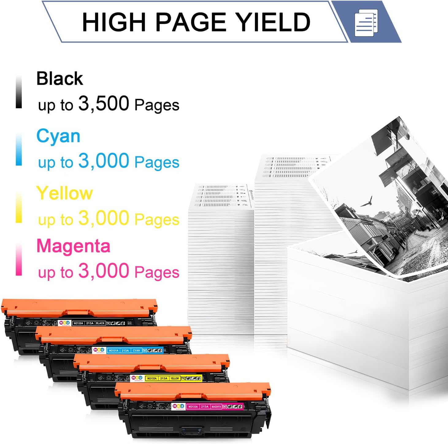 - Premium Printing Quality: the cartridges for 213A delivers vivid & vibrant color printout, no fading, no powder leakage and no streaks