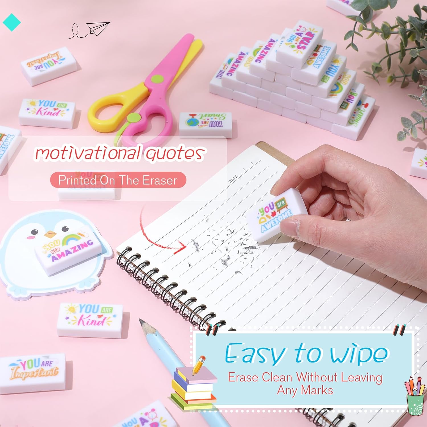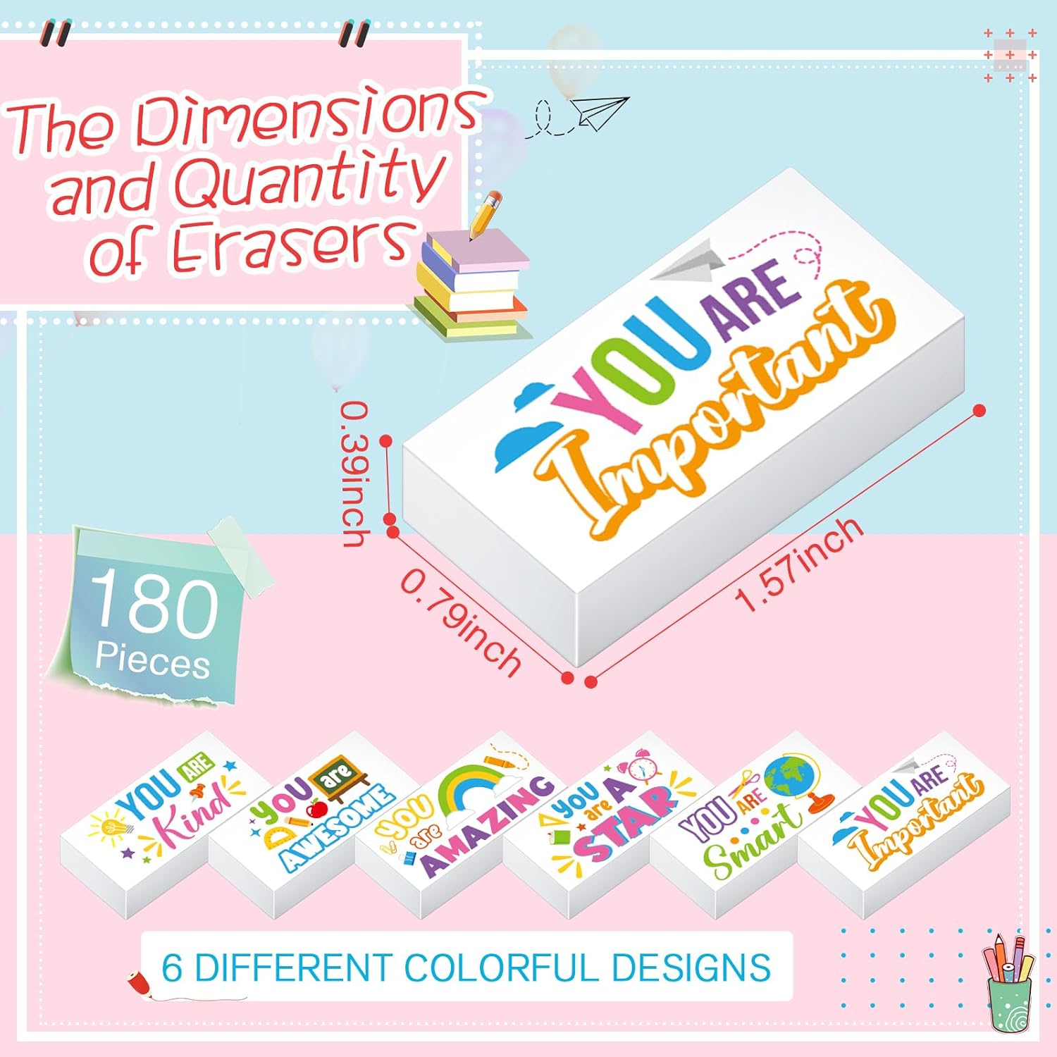 - Generous Packaging: the package includes 180 inspirational erasers bulk, ensuring that you never run out; Whether for personal use or a classroom setting, this bulk printed with 6 different motivational designs, satisfying all your erasing needs for a long time