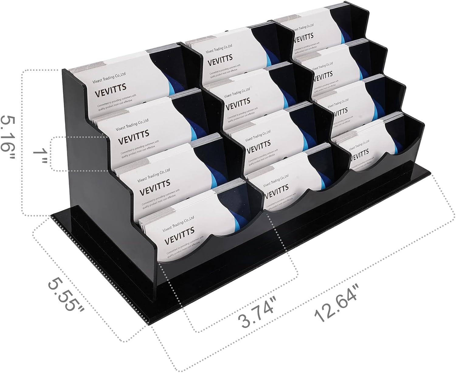 Business Card Holder, Acrylic Business Card Display, Clear Desktop Business Card Stand for Exhibition, Home & Office Black 4 Tiers 12 Slots