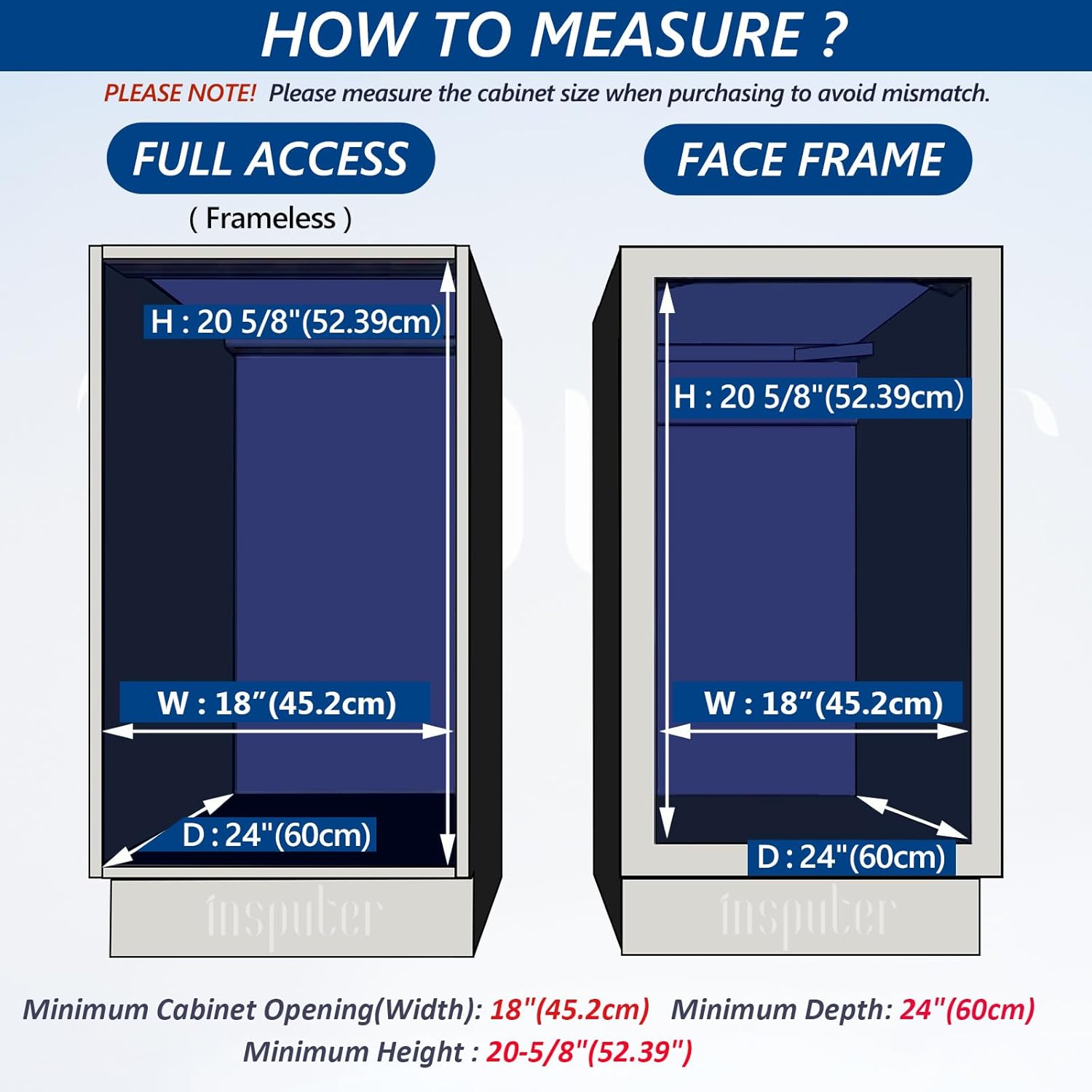 - Slide Out Trash Can Size: 14.6“ W x 22.04” D x 18.9“ H; Trash can: 16.1"W x 11.3"D x 17.3"H; Fits Minimum cabinet size: 18” W x 24 “D x 20.6” H. Please measure the cabinet dimensions before purchasing to avoid mismatch between the cabinet and the sliding trash can under cabinet. Pull out trash can for kitchen cabinets is easy to install with detailed instructions, installation video, easy to understand
