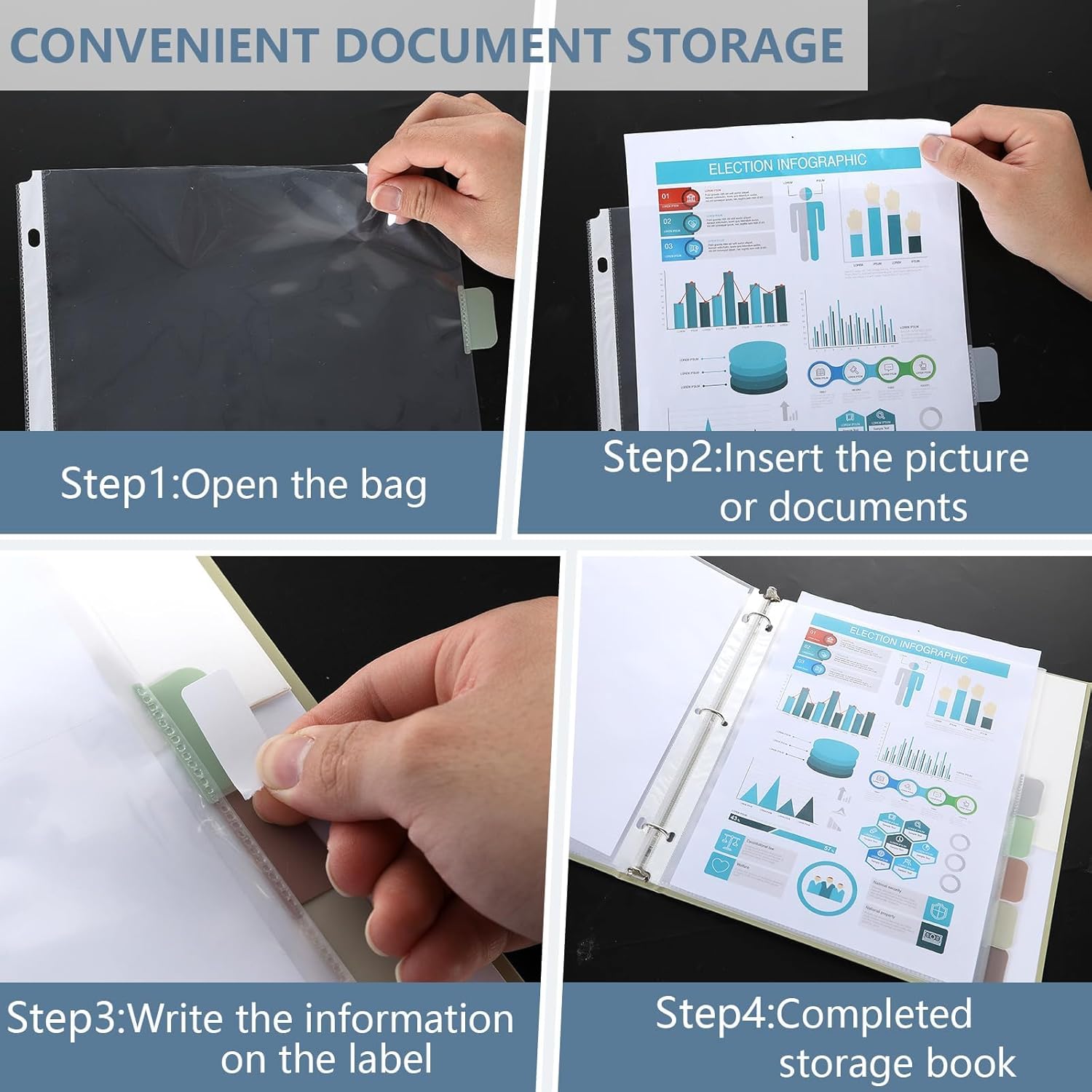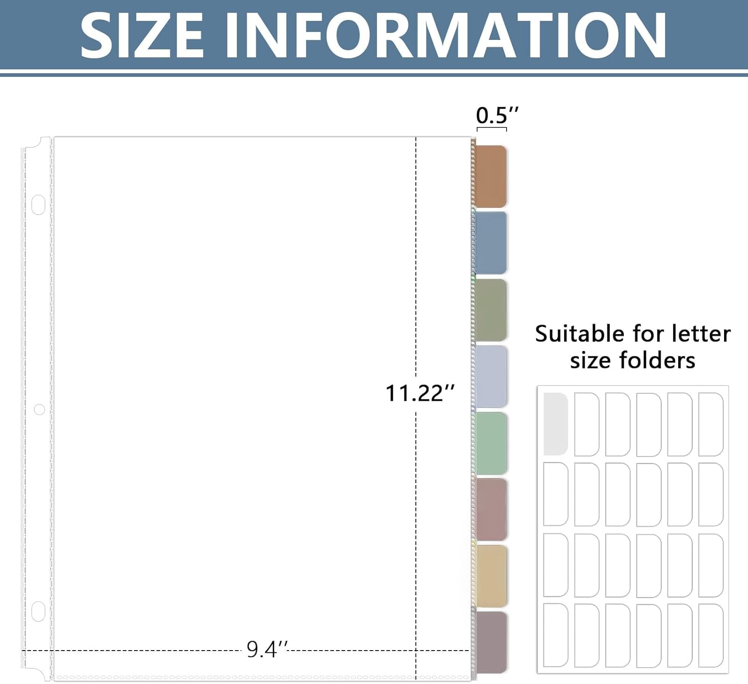 - Versatile applications for all your needs: Whether you're storing notes, reports, or other important documents, these tabbed 3 ring binder sheet protectors protect against damage and stains. Ideal for preserving files, recipes, photos, certificates, organizing homework, customer information, classified documents, recipes, custom presentations, reference materials, and personal documents with ease.