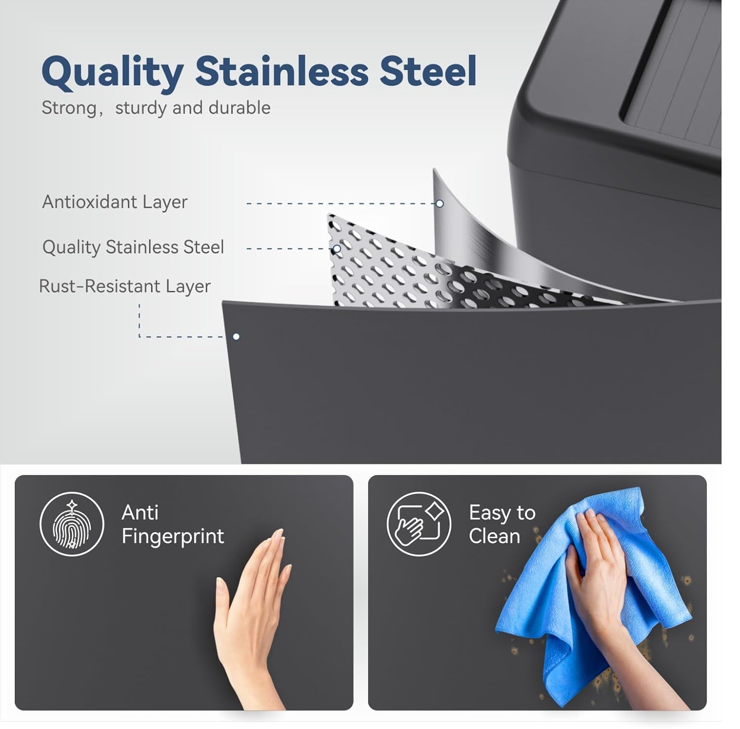 - 【Durable Stainless Steel Construction】:Crafted from high-quality stainless steel, this 13-gallon trash can is built to last. The robust material ensures long-lasting use and adds a modern touch to your kitchen. The stainless steel surface of the garbage can is easy to wipe clean, making maintenance a breeze.