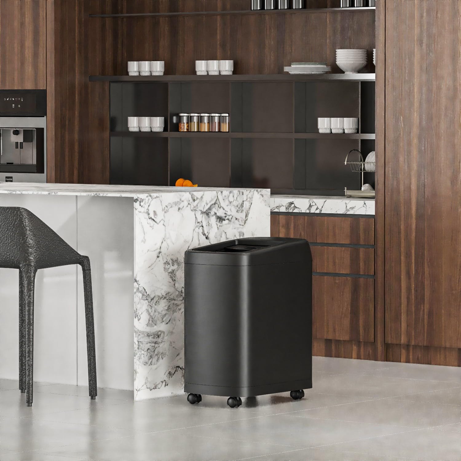 - 【Sleek Roll-Top Lid Design】 :The roll-top lid design not only keeps the trash hidden but also prevents unpleasant odors from escaping. The smooth opening and closing mechanism effortlessly seals in the odor, keeping your kitchen smelling fresh.