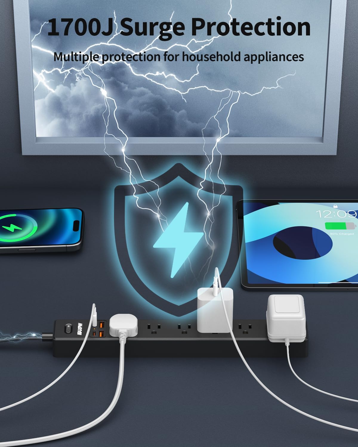 - 【Safeguard Your Devices】- Our long outlet power strip features a 1700-Joule energy rating, providing reliable surge protection for meeting rooms, offices, workstations, and entertainment centers. Keep your devices safe from power surges with confidence.