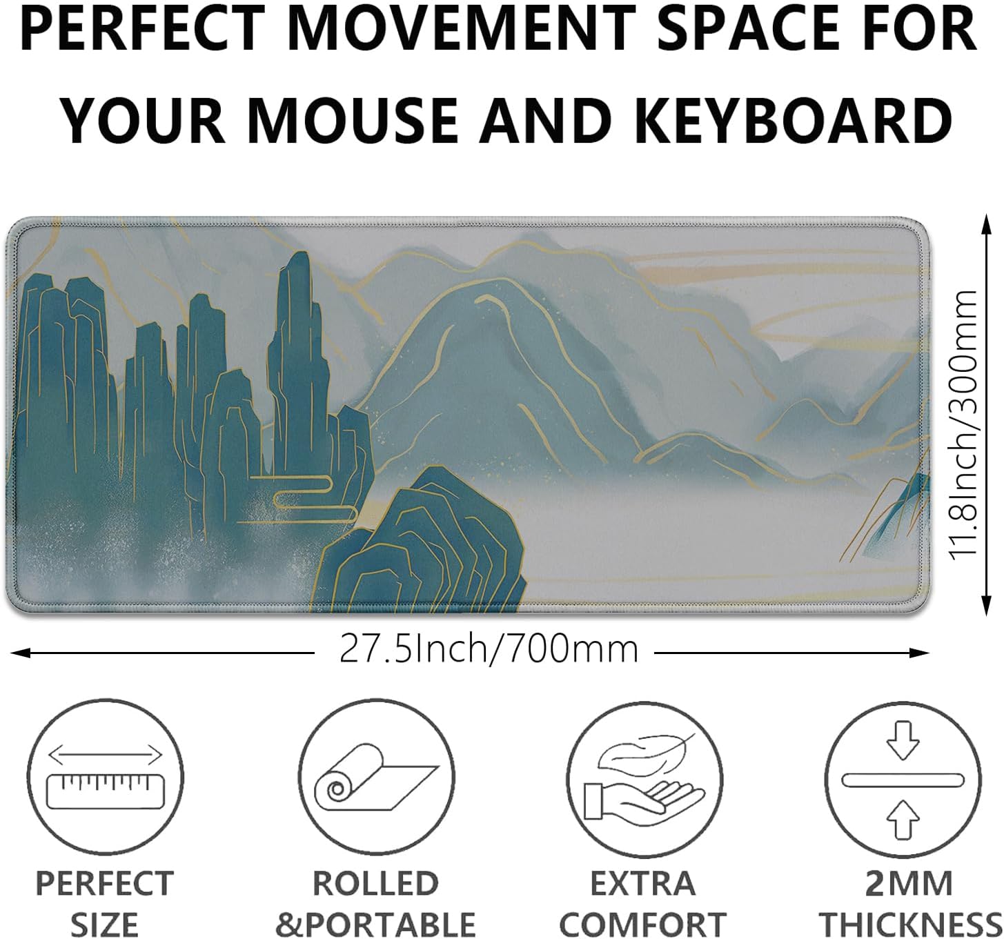 - Extended Large Mouse Pad Size: Large desk pad mat's measure: 27.5 x 11.8 x 0.1 inches. The keyboard and mouse pad is large enough to have a mouse, gaming keyboard, and other desk items Just immerse into your work or games