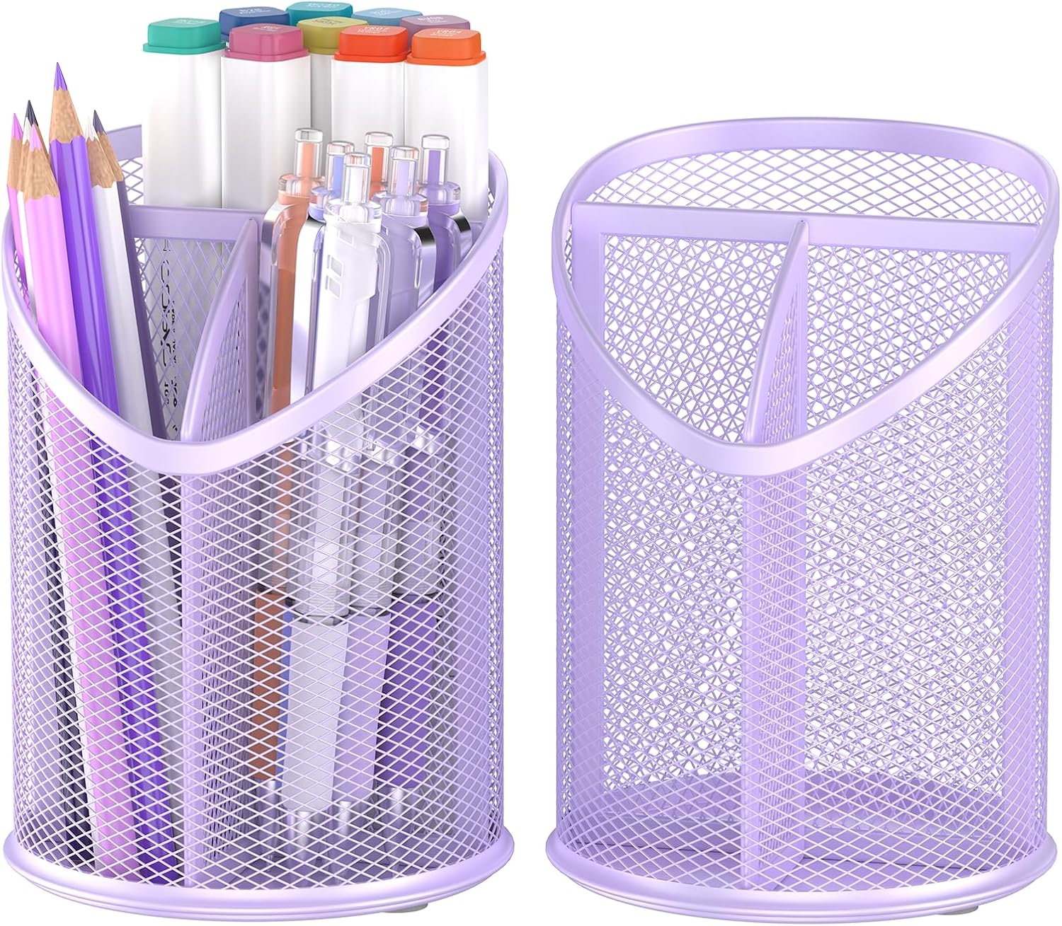 - 【Stable】:Purple mesh pencil holder is constructed in sturdy metal and coated in black epoxy, solid metal structure, anti-fall, anti-cracking for long time using