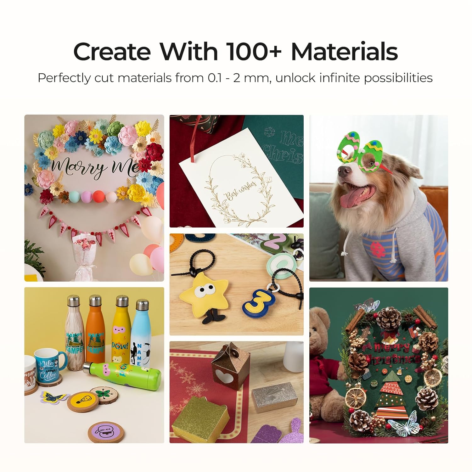 - CUT 100+ MATERIALS WITH EASE: The vinyl cutter allows crafter to easily handle more than 100 materials from 0.1mm to 2mm, from vinyl and paper to specialty items like faux leather and glitter cardstock. Especially suits for HTVRONT craft materials. An ideal cutting machine to meet a wide range of crafting needs, allowing you to explore endless creative avenues