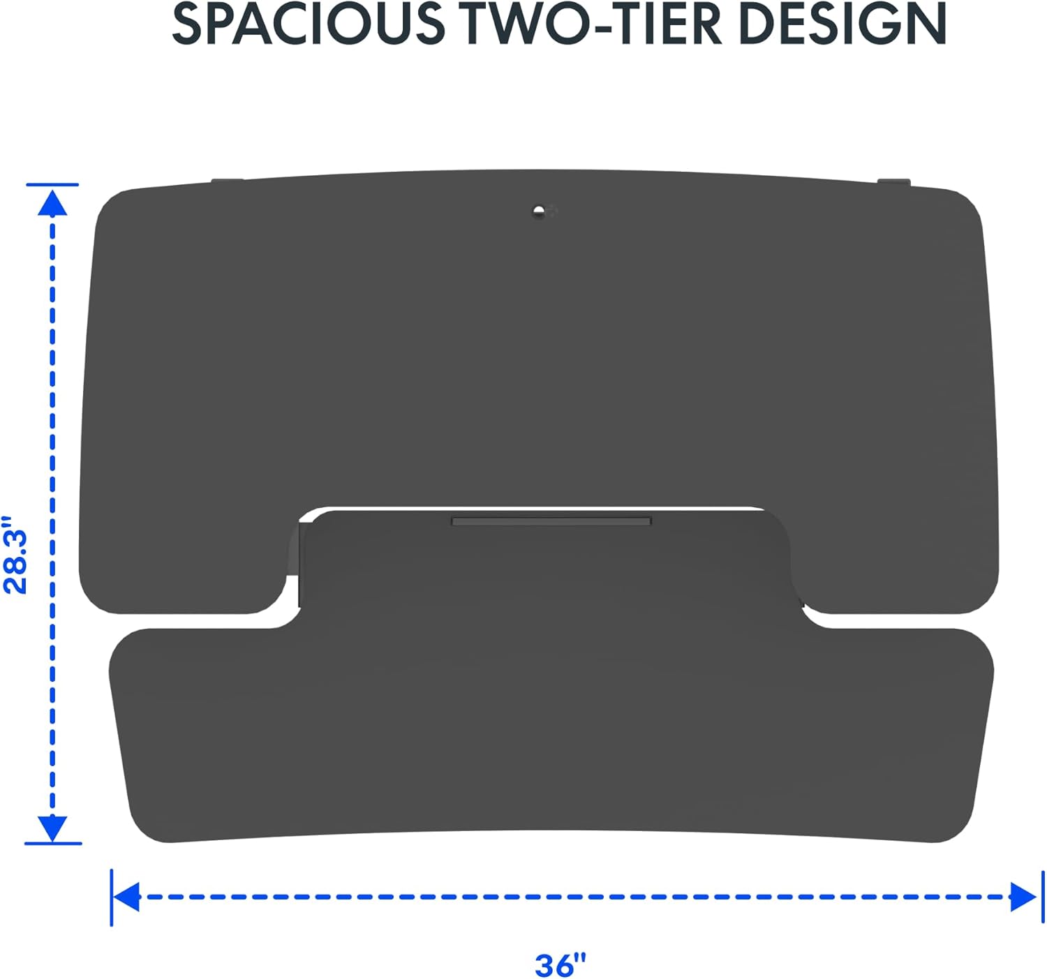 - Ergonomic 2-Tier Design: Our 2-tier design offers ergonomic excellence for reading and typing! The 35'' width of top tier holds a monitor up to 27'' with ease, the roomy base tier of 12.1'' depth holds a standard keyboard and mouse or a 13'' laptop