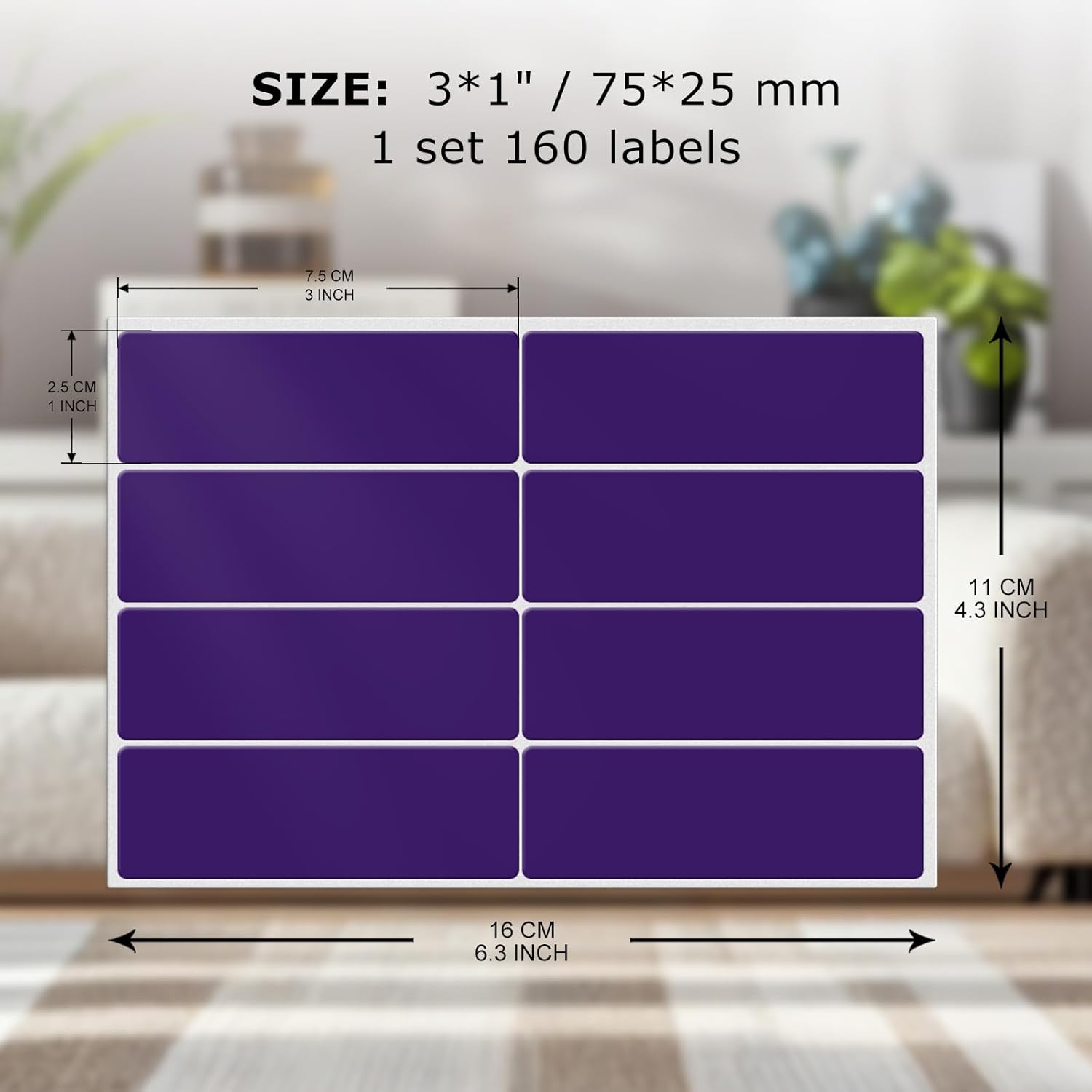 Colored Stickers 3×1 Inch Vinyl File Folder Sticker Purple Rectangle Removable Waterproof Color Coding Moving Label for Boxes Office Inventory Labeling 160 PCS