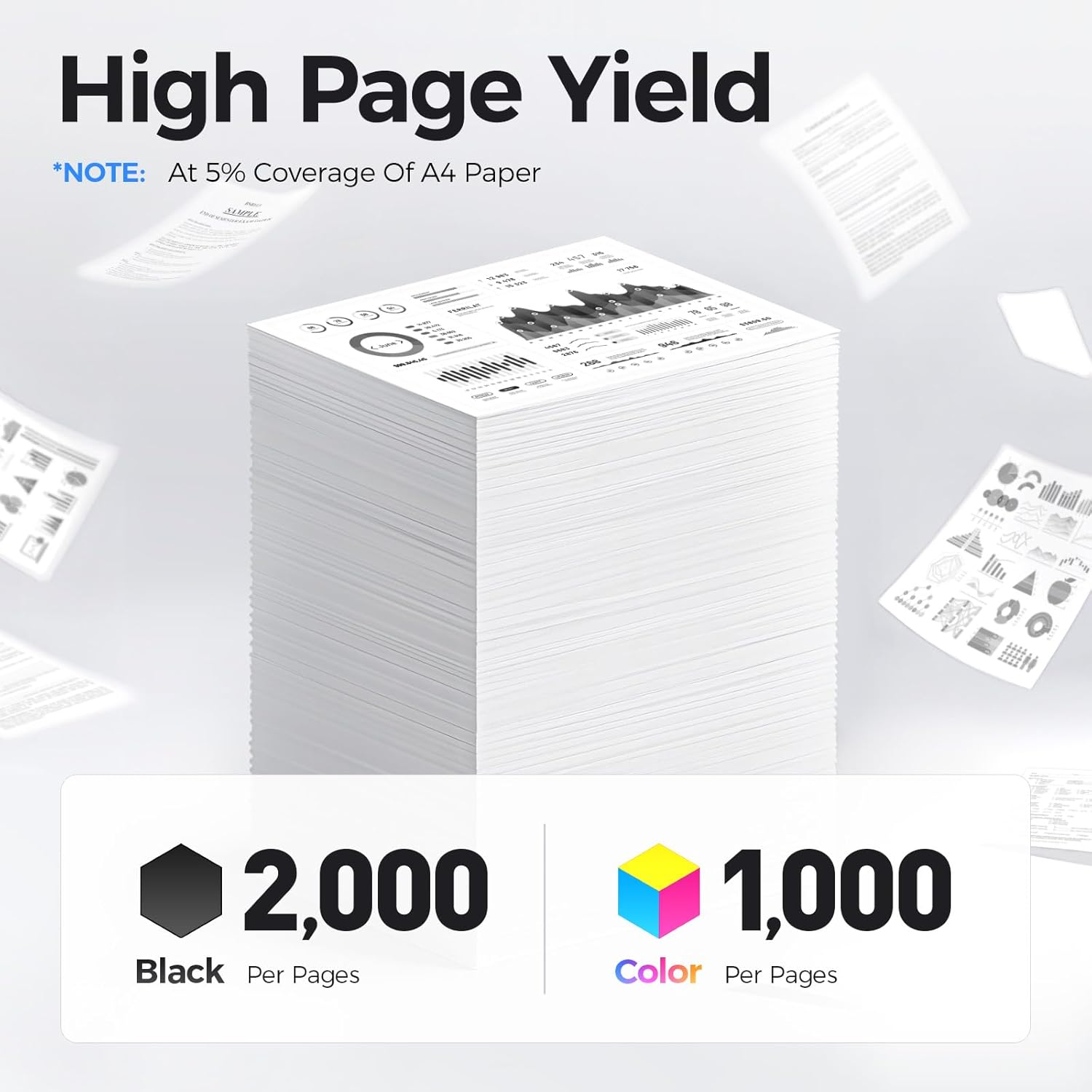 - High-Yield: up to 2,000 pages per 6022/6027 Black and pages per 1,000 Color (Total 5,000 pages, 5% coverage).