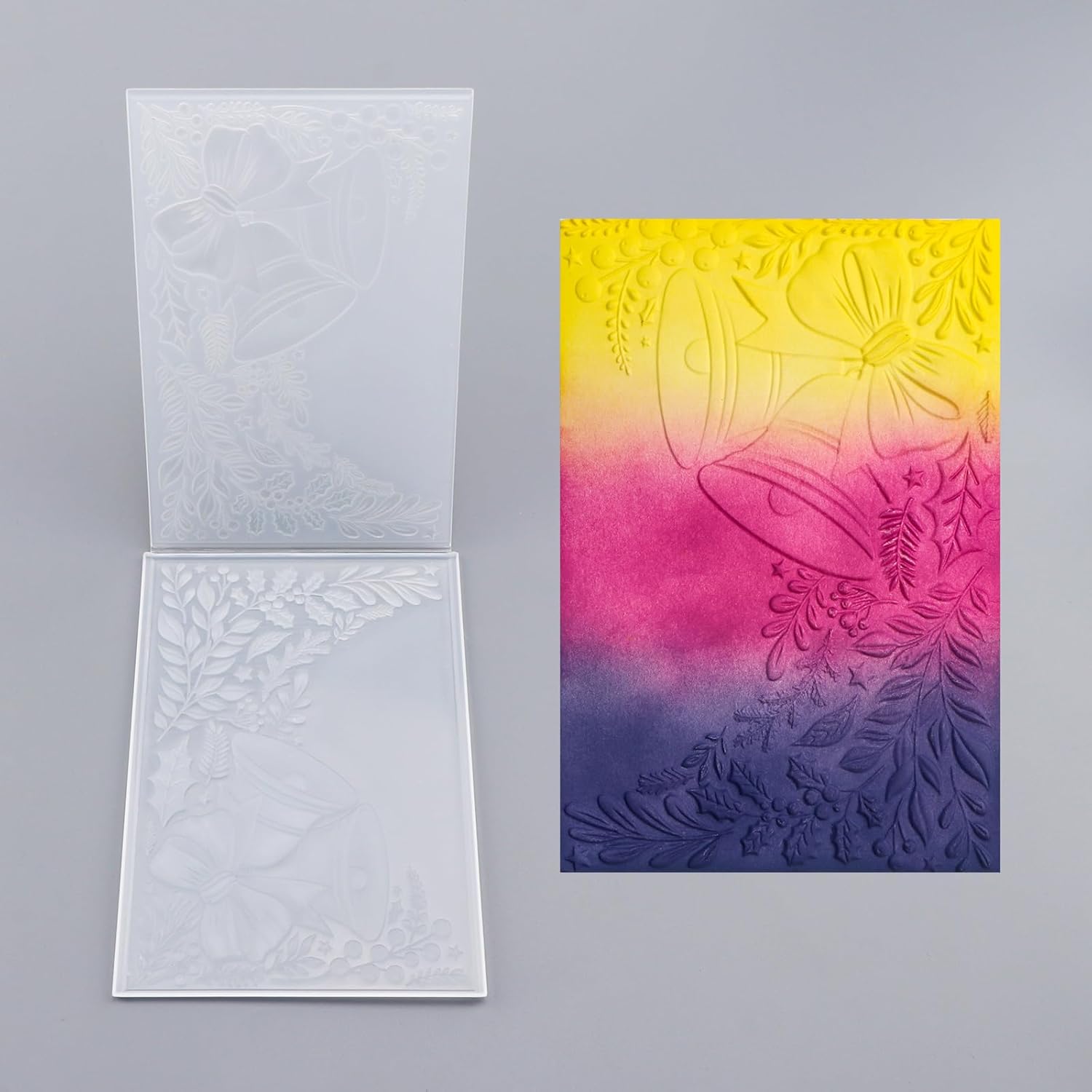 BAOFALI 3D Embossing Folder for Card Making,Bow Tied on The Bell Clear Plastic Texture Fades Embossing Folder Template for Scrapbooking and Other Paper Craft Album Stamps DIY Decoration