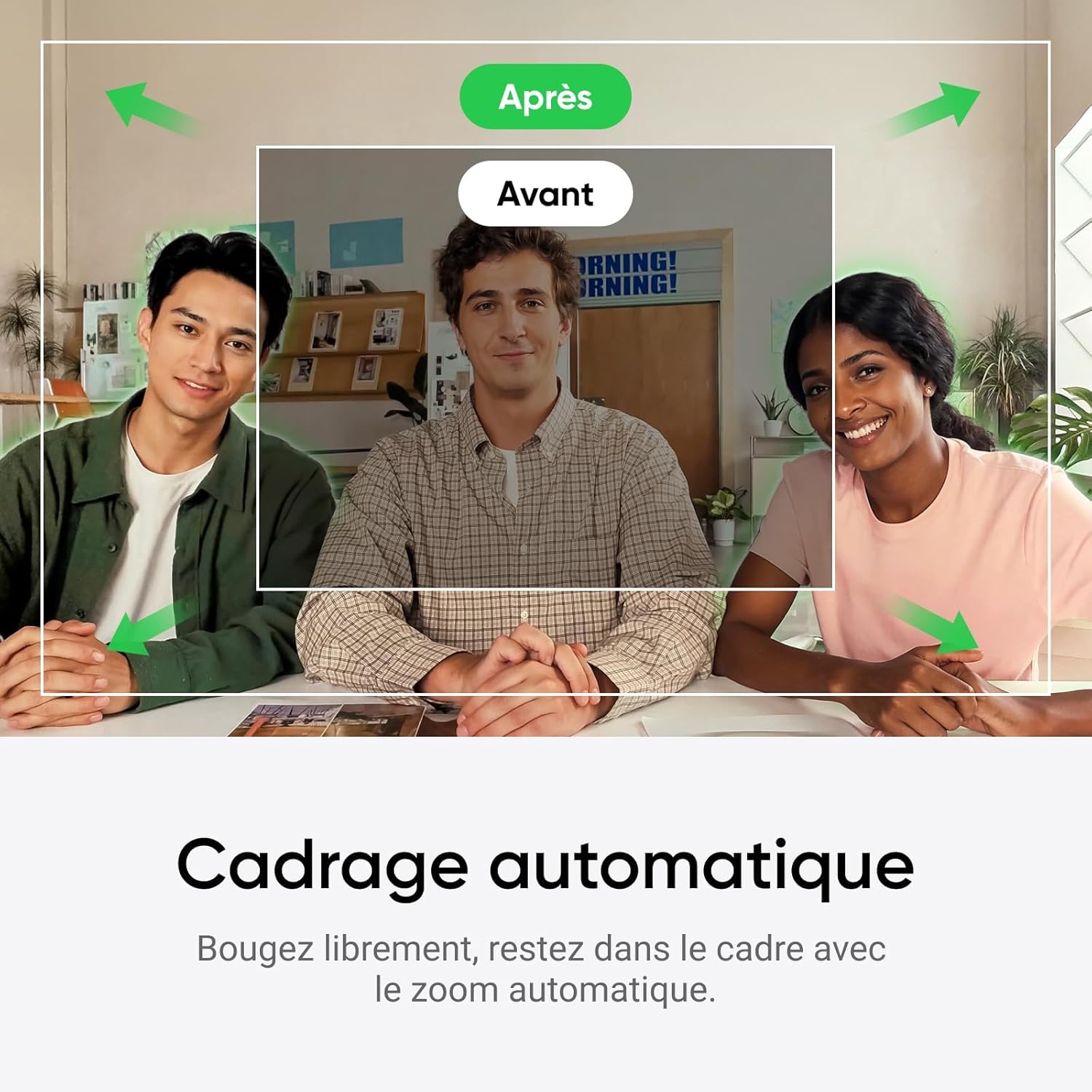 - Auto Framing: Insta360 Link 2C automatically zooms and adjusts to keep everyone clearly in sight, whether it's one person or a group.