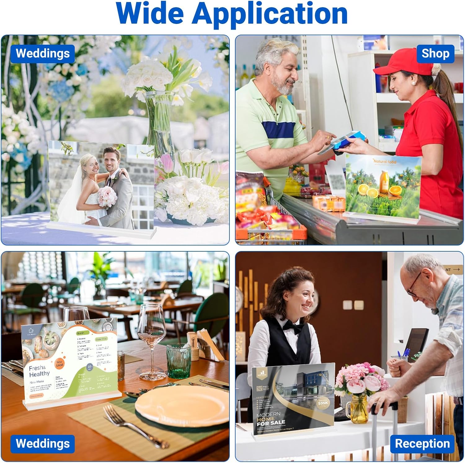- Versatile Applications: Fits standard 8.5" x 11" size signs, suitable for a wide range of settings including restaurants, coffee shops, bars, stores, hospitals, and schools. Easily insert and change signage with the side opening, providing hassle-free customization.
