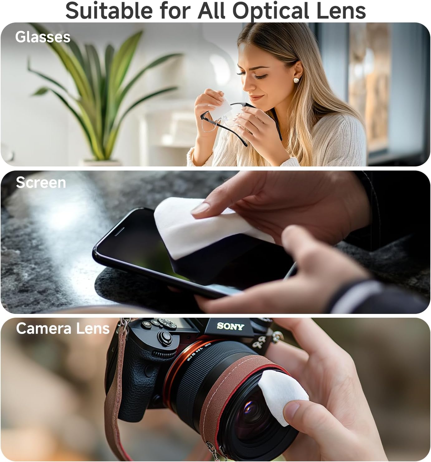 - 【Safe for Optical Lens】With an ammonia-free formula, our anti-fog wipes are effective and safe on glass lens, plastic lens, and anti-reflective coatings. Eyeglasses, sunglasses, goggles, camera lens, and electronics screens - cell phones, computers, tablets, car screens, watch screens, and more.