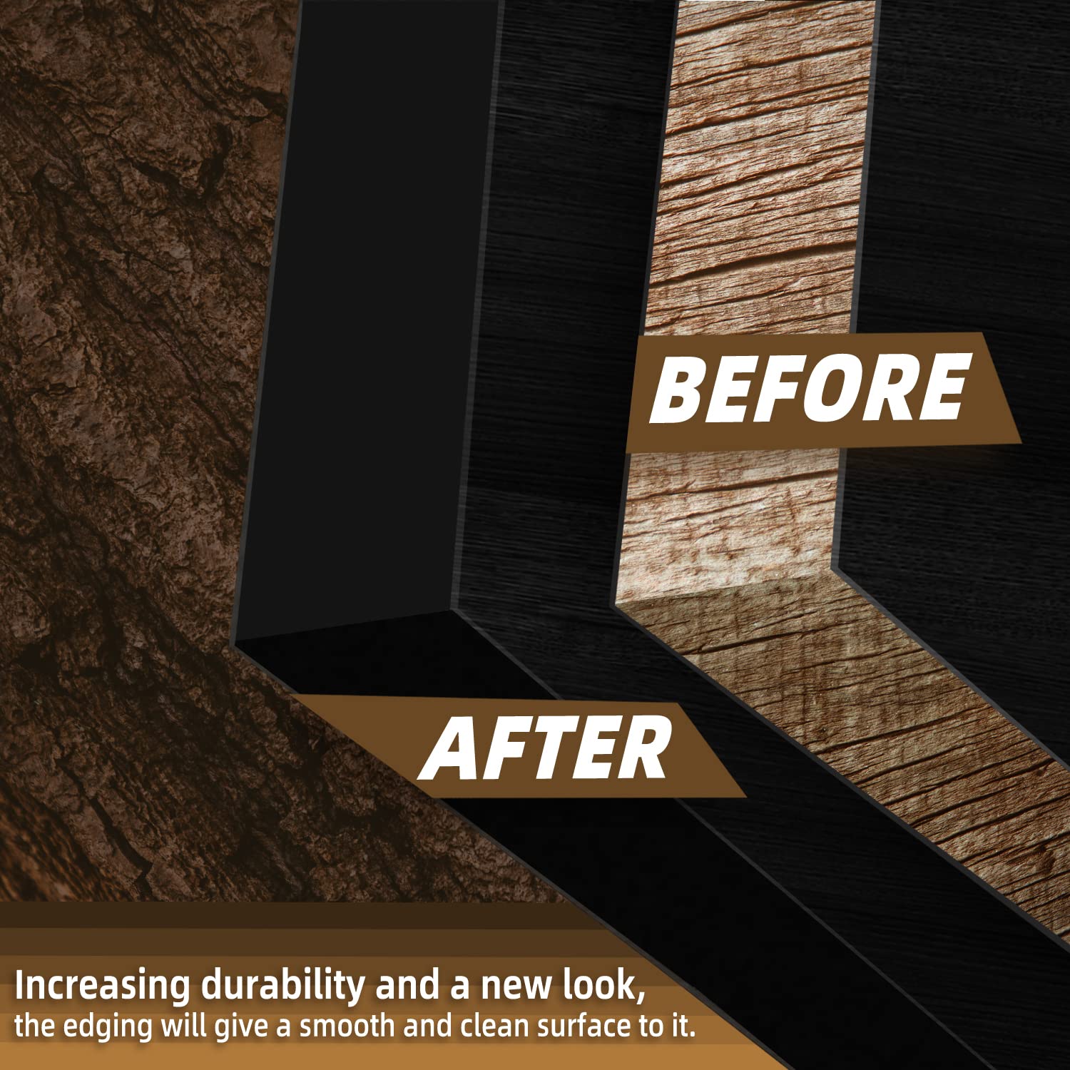 - √【UPGRADE DESIGN】- The size of Edge Banding is 1 inch x 50ft, and the thickness is 0.6mm, It's suitable for your daily needs. Edge Banding is a strip of wood veneer with heat melt adhesive pre-applied to the back. You simply hold the edge banding in place, then run over it with a heated iron. After cooling, please press it with your hand and trim off the sides with the Utility Knife, 0.6mm thickness can let you easy to do.