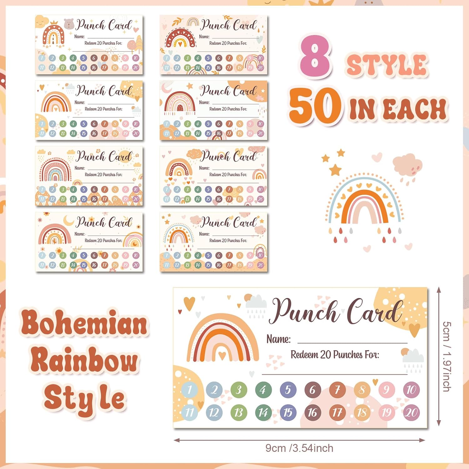 Fumete 400 Pcs Punch Cards for Classroom Reward Cards Behavior Incentive Loyalty Awards for Kids Students Teachers School Business, 8 Styles, 3.5 x 2 in(20 Boho Punches Style)