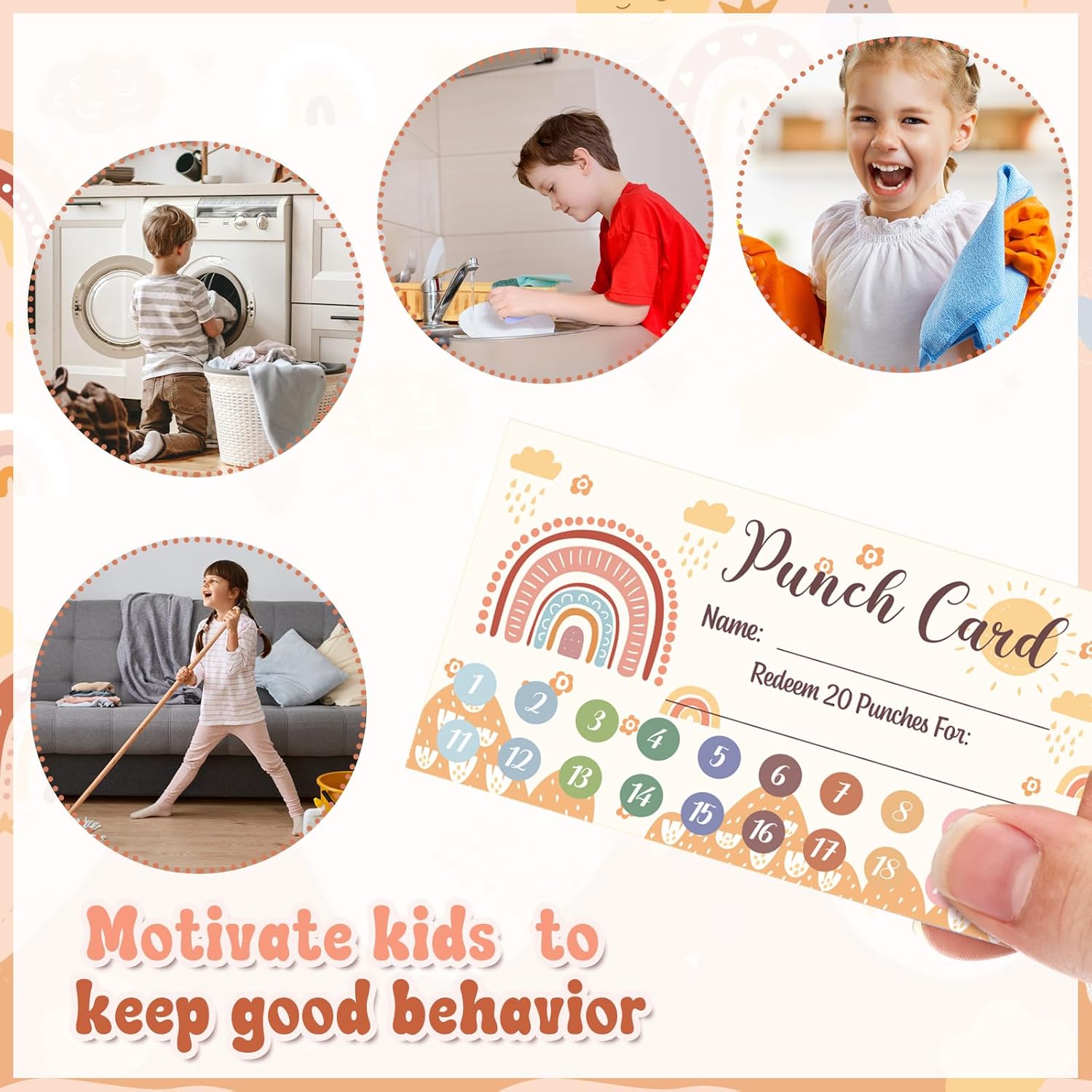 - Fun to Use: you can punch one hole on the reward chart for kids every time they accomplish a goal or task, when all the 20 punches finished, celebrate accomplishments with them and give them the rewards