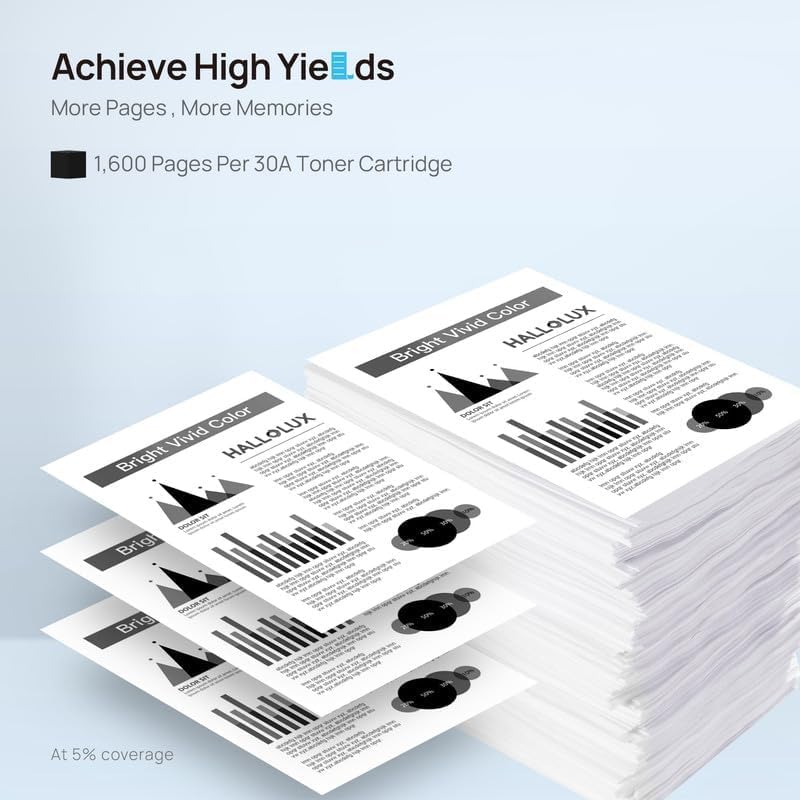 - High Yield: Our 30A 30X black toner cartridge creates rich black and prints up to 1,600 pages at 5% Coverage A4 paper.