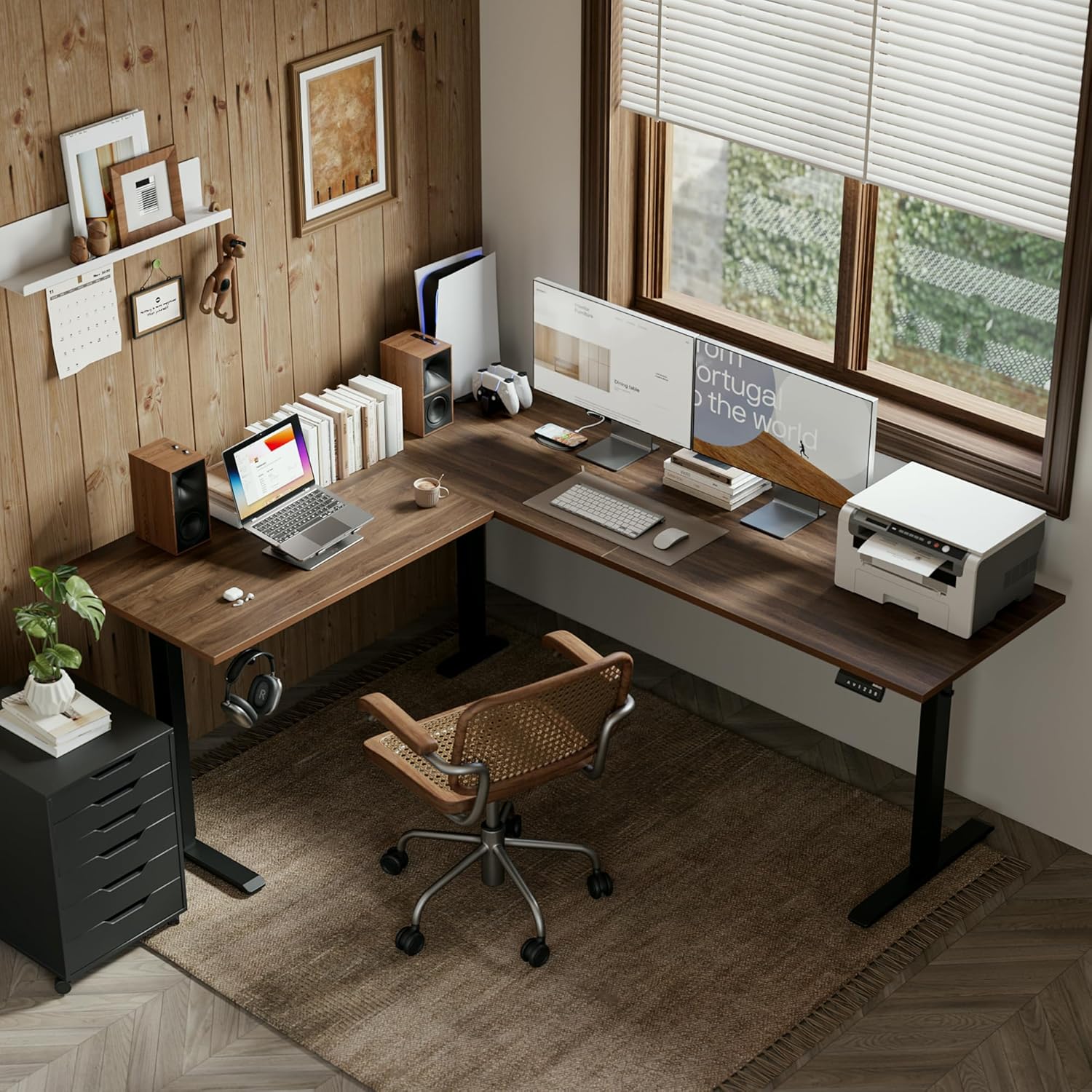 Agilestic L-Shaped Standing Desk Adjustable Height, Electric Corner Standing Desk, Sit Stand Up Desk, 75x61 inch Sit Stand Computer Table, Dark Walnut