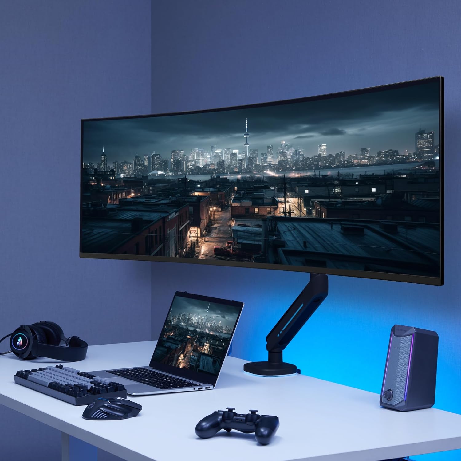 AVLT Single 27”-45” RGB Gaming Monitor Arm Desk Mount Built-in 20 Lighting Modes Touch Button Control Fits Flat/Curved/Ultrawide Screen Height Swivel Tilt Rotation Adjustable Stand -Black