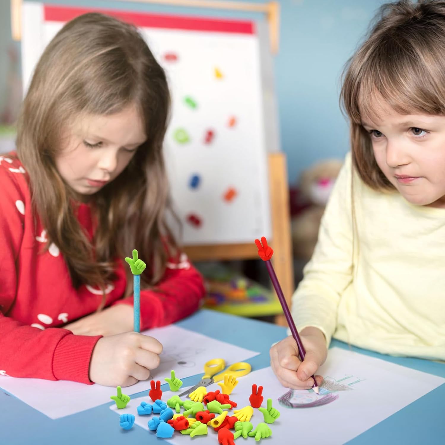 - Cute Shape Design: The rubber pencil eraser caps are designed in the shape of cute rock paper scissors. The bright color and cute shapes adds a funny and attractive element to pencils, will increase the fun of studying and writing