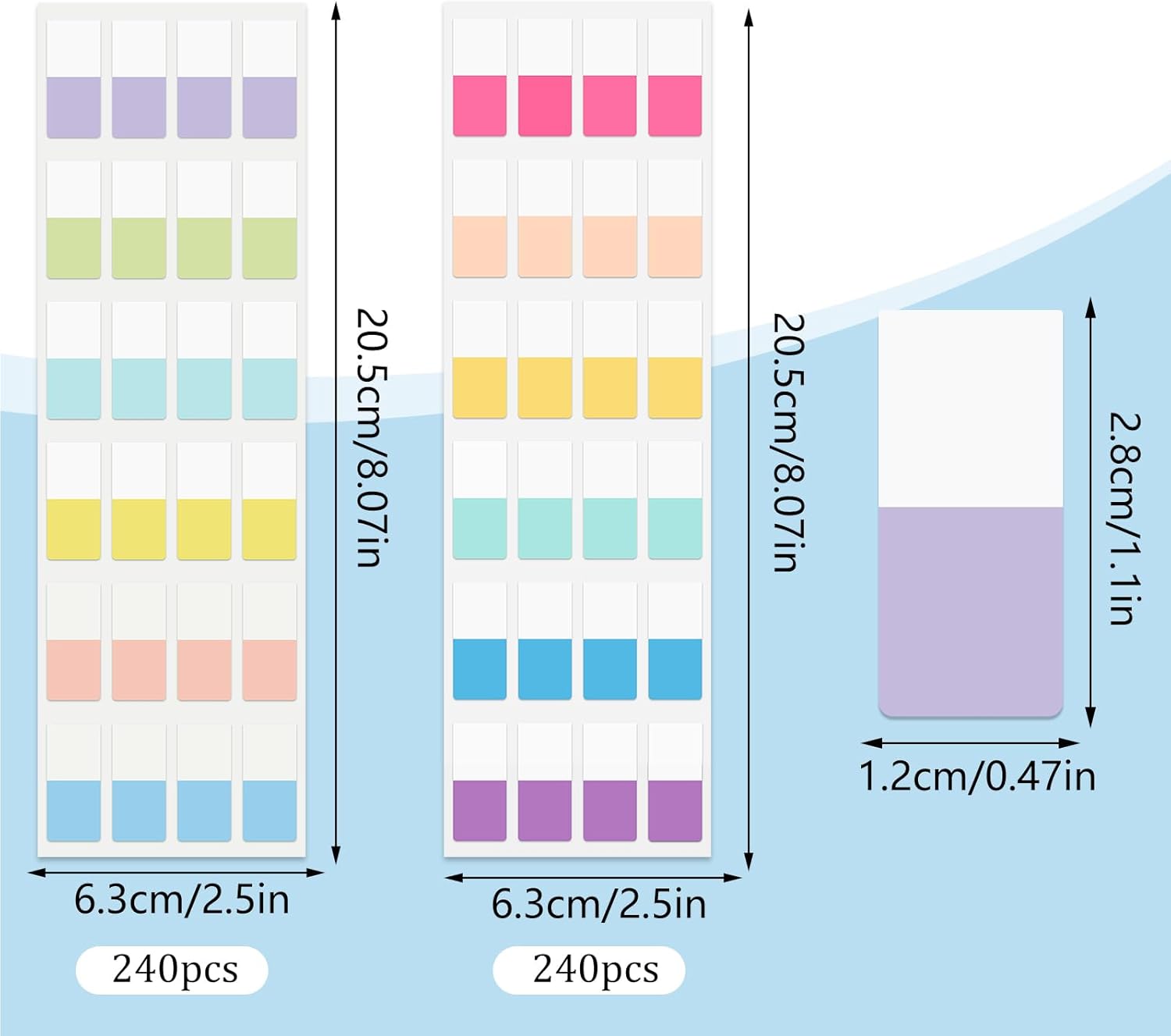 - Package Includes: 480 pieces of sticky index tabs, a single small label size is 0.5×1 inch, 2 sets of different colors, bright colors, multiple choices, which can meet your different needs