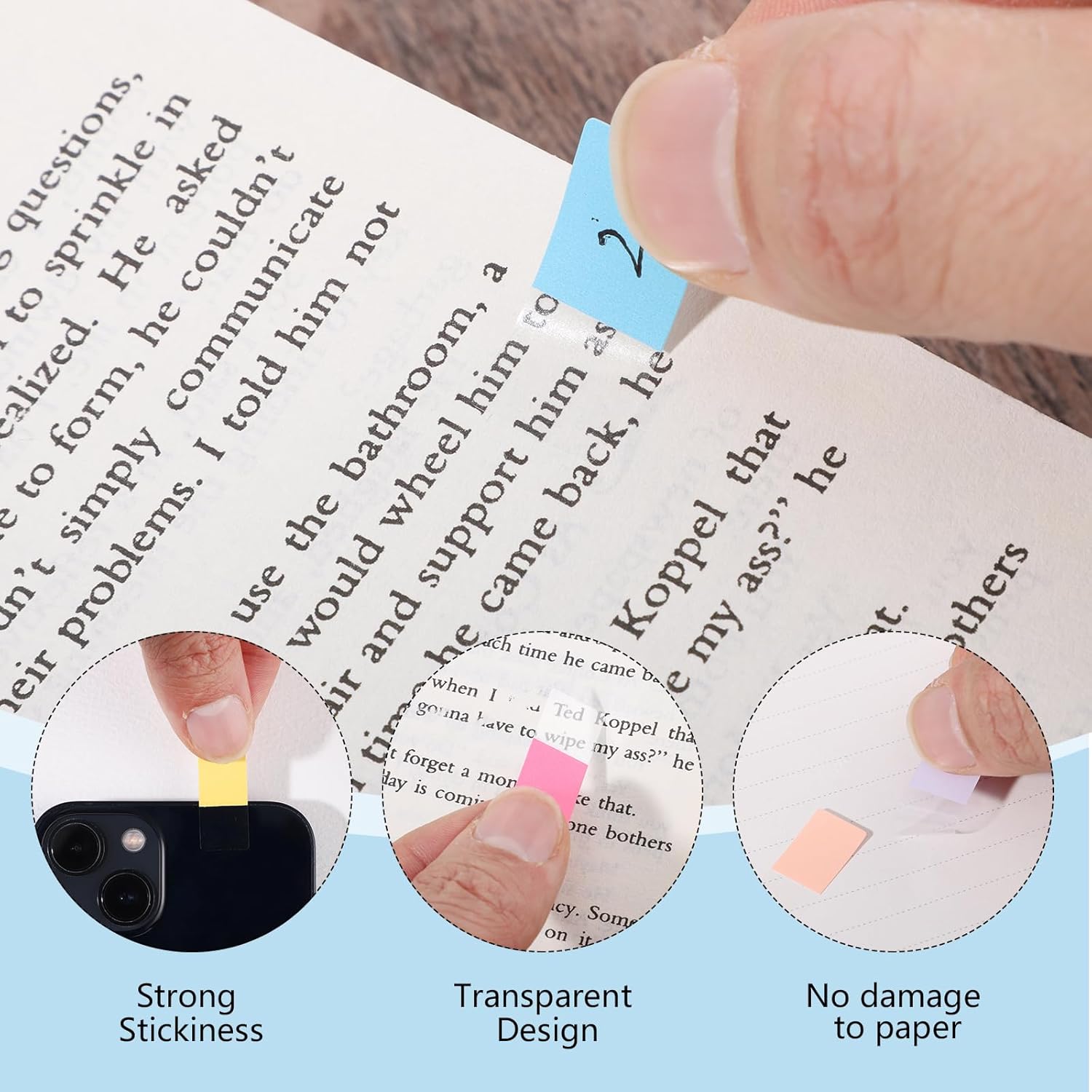 - Transparent Design: Half of the book sticky tab is transparent, with self-adhesive, it will not obscure characters, and the other half can be written to help you better mark and organize documents