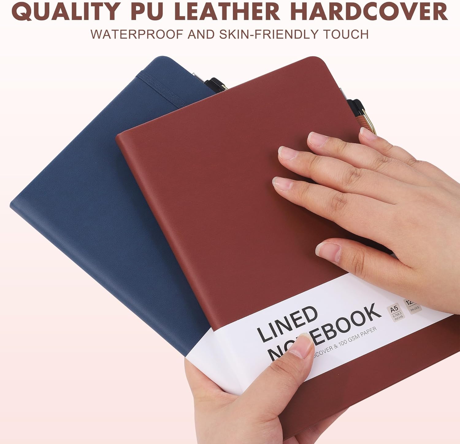 - Quality leather & paper: our A5 notebooks are made of 100 gsm thick paper, providing a smooth touch and resisting ghosting and bleeding, compatible with most pens, pencils and markers; the lined journal notebook with pens feature premium PU leather hardcover, waterproof and easy to clean, helping the notebooks stay upright without the pages curling or bending; the ballpoint pen is designed with a 0.5 mm bold tip for smooth, non-leaking drawing, ideal for use with the journal