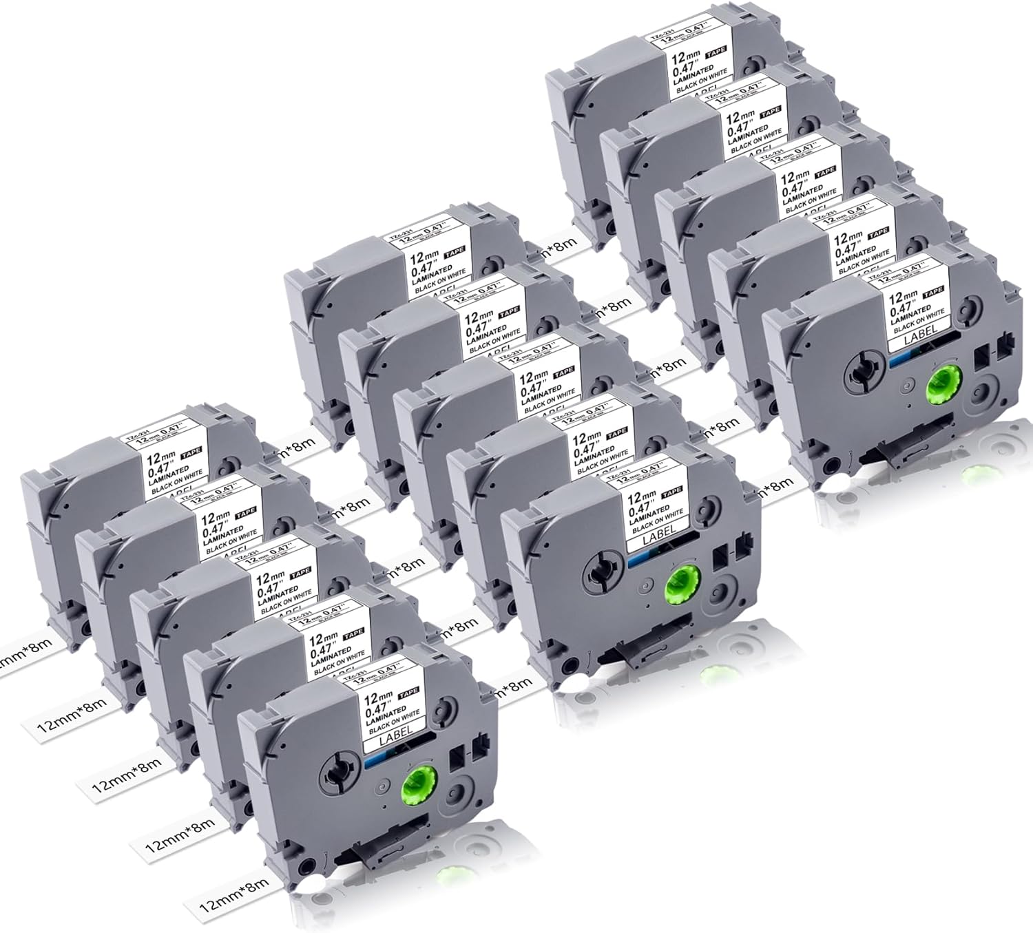 - (1) Items : 15-pack label maker tapes replacement for Brother P Touch label tape TZe-231 black on white, 12mm x 8m(0.47in x 26.2ft). (Note:TZE231 is NOT mk231 or tc tape! Please check if your label maker matches the 12mm TZe label tape!)