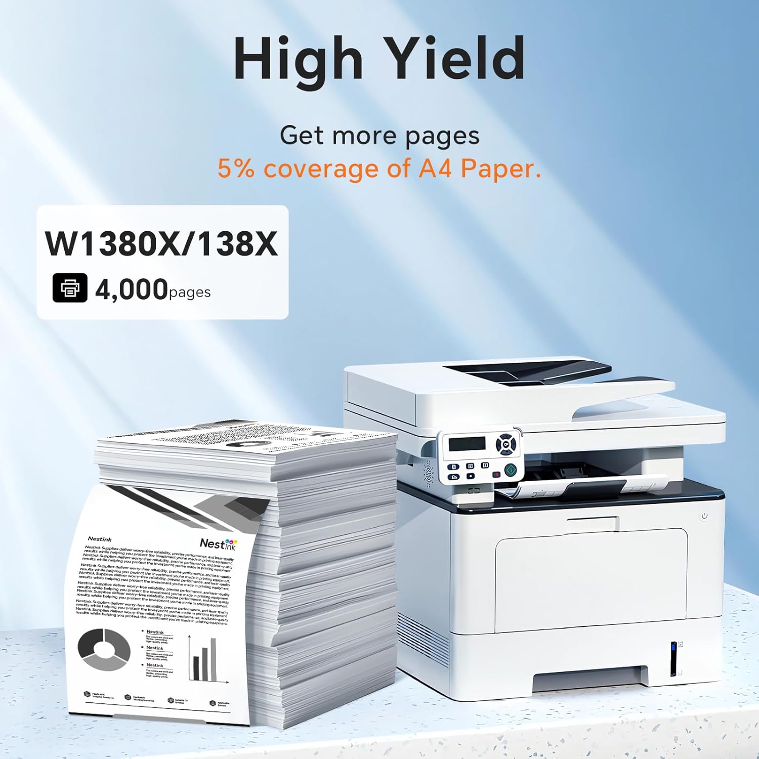 - High Page Yield: 4,000 Pages for 138X W1380X Black Toner Cartridges (Letter/A4, at 5% Coverage)