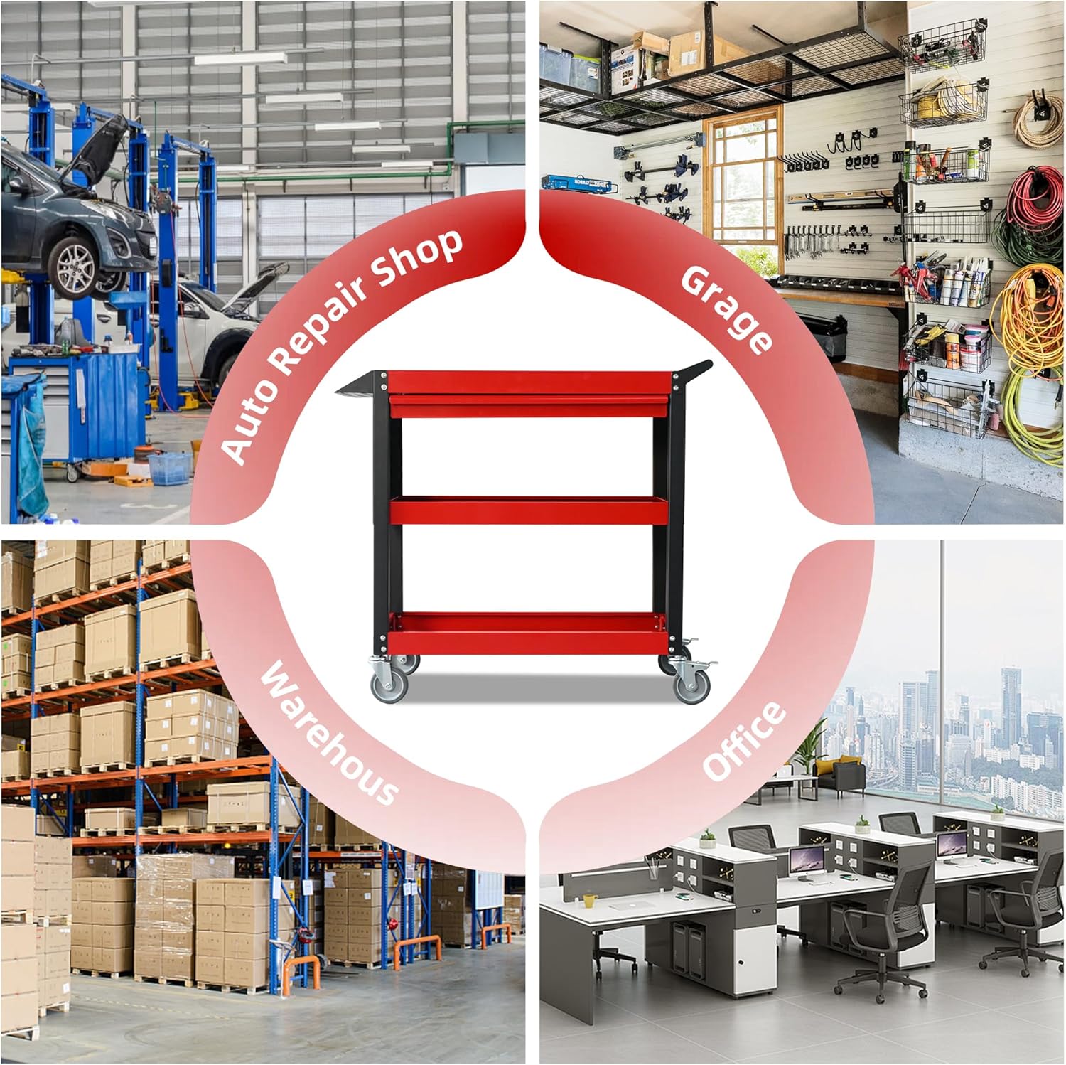 - Versatile for Various Applications: Tool cart is not only perfect for workshops and garages but also highly suitable for warehouses and various repair environments. Whether it's tools, parts, or other items, our rolling tool cart helps you keep everything organized with ease