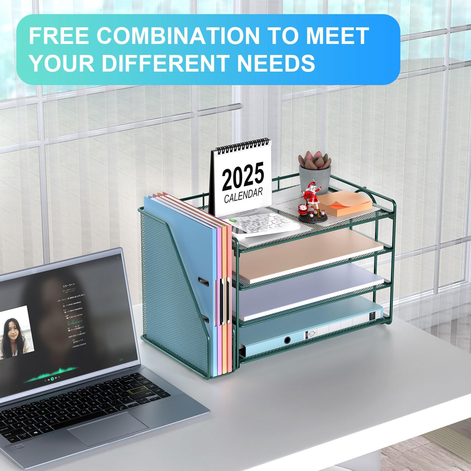 gianotter 4-Tier Paper Organizer With Magazine Holder, Desk Organizers and Accessories, Green Desk Accessories, File Organizer for Office Supplies Storag(Green)
