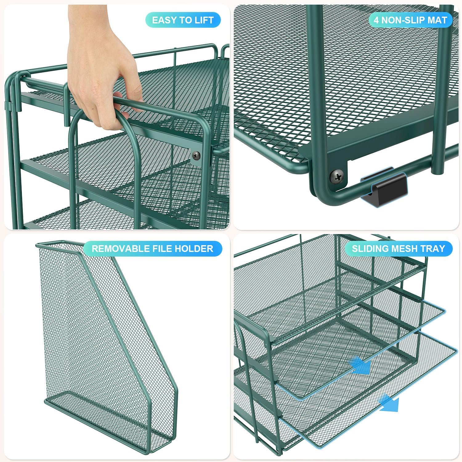 - 【Easier Access】The paper tray organizer for desk is designed with an ergonomic layout, allowing you to easily locate and access files on your desk, making item retrieval more efficient. Its compact design enables it to store more office supplies without taking up too much space.