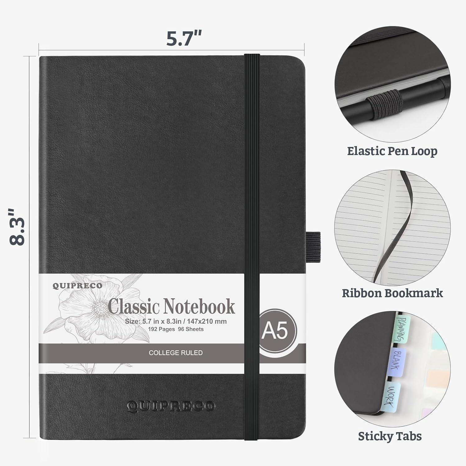 - A5 Hardcover: 5.7x8.3 inches—portable yet spacious. Sturdy hardcover with rounded corners protects pages from curling. Sleek, pattern-free design fits travel, home, work, or school.