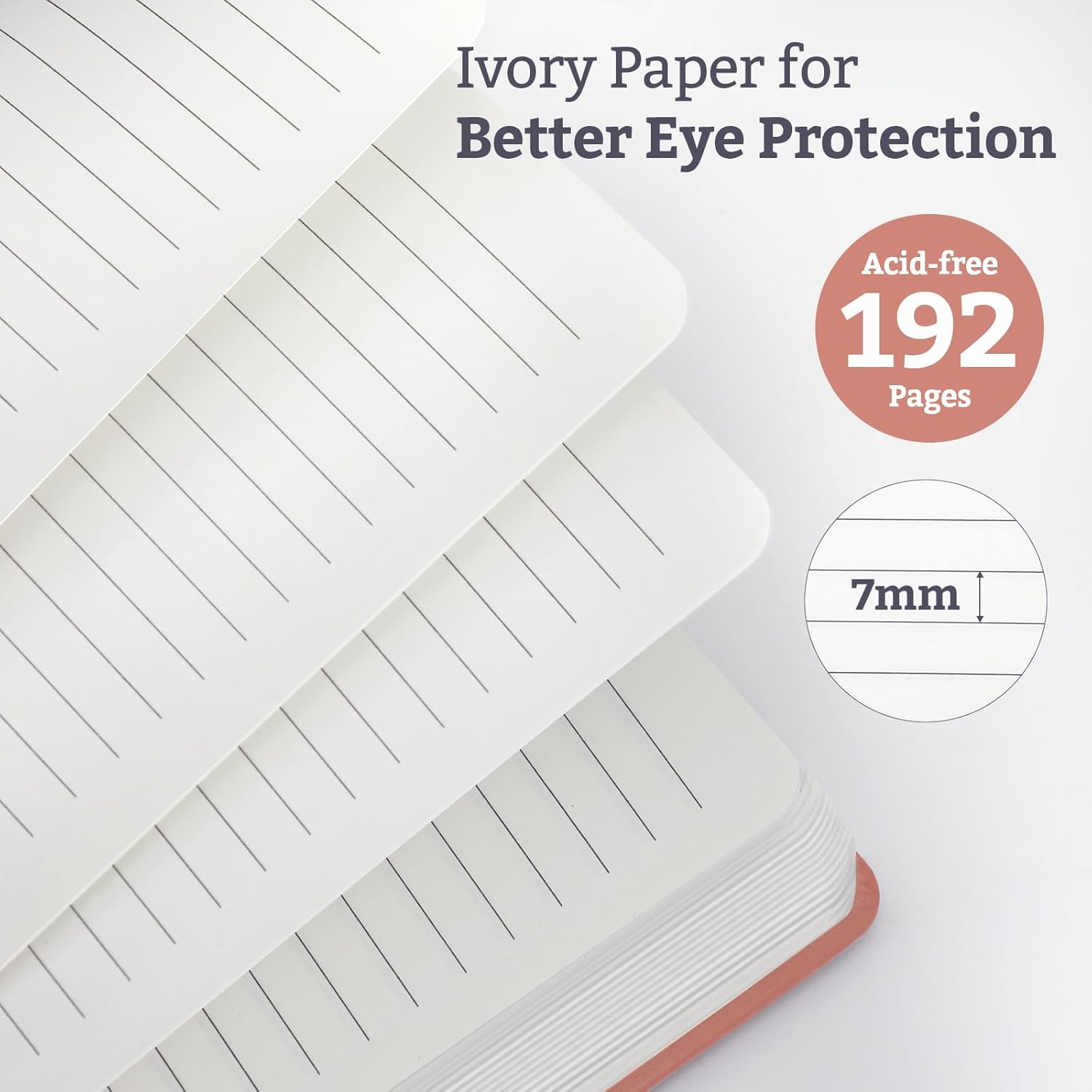 - Classic Lined Pages (2-Pack): Each notebook features 192 pages (96 sheets) of 100gsm acid-free college-ruled paper—no bleeding or ghosting. The soft ivory tone reduces eye strain.