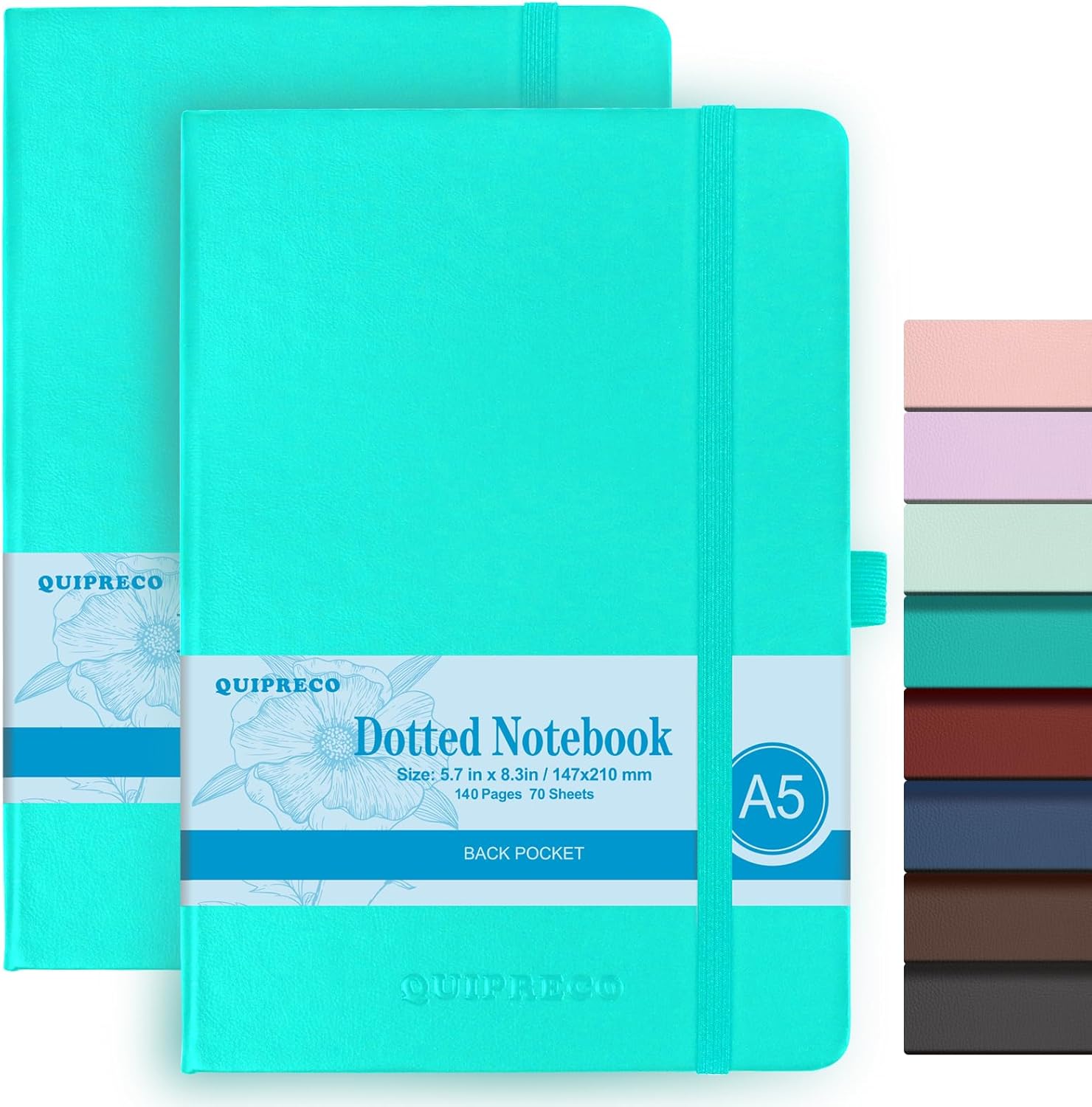 2Pack Bullet Dotted Hardcover Journal Notebook, A5 140 Pages 120Gsm Thick Paper for School,Note Taking,Work,Diary,5.7"*8.3",Turquoise