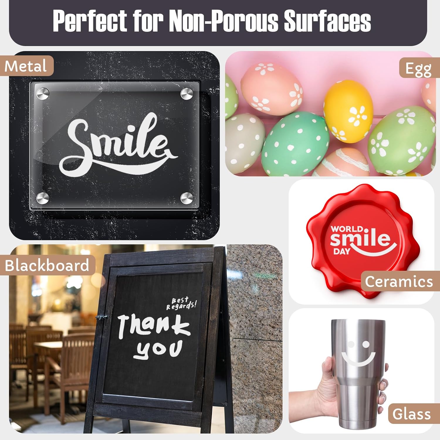 - Works on Various Surfaces: whether it's wood, foil, boxes, poster board, concrete, stone, tile, brick, metal, plastic, vinyl, or wax paper, these jumbo permanent markers bulk can leave firm and prominent marks on various surfaces