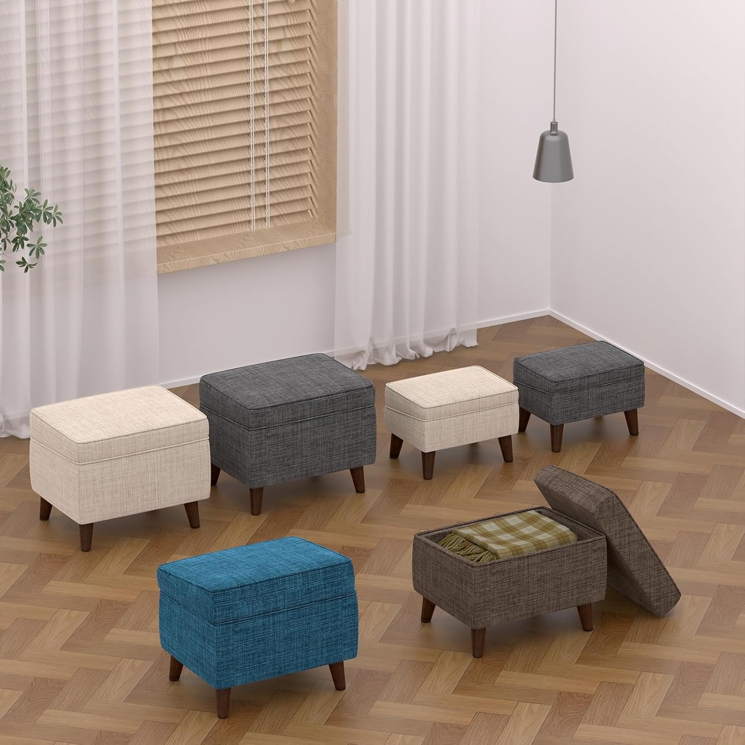 Foot Rests with Adjustable Cover, BOGO, Storage Ottoman Dorm, Footstool & Sitting Stool, Ottoman Foot Stool Set for Living Room, Bedroom, Dorm, Beige