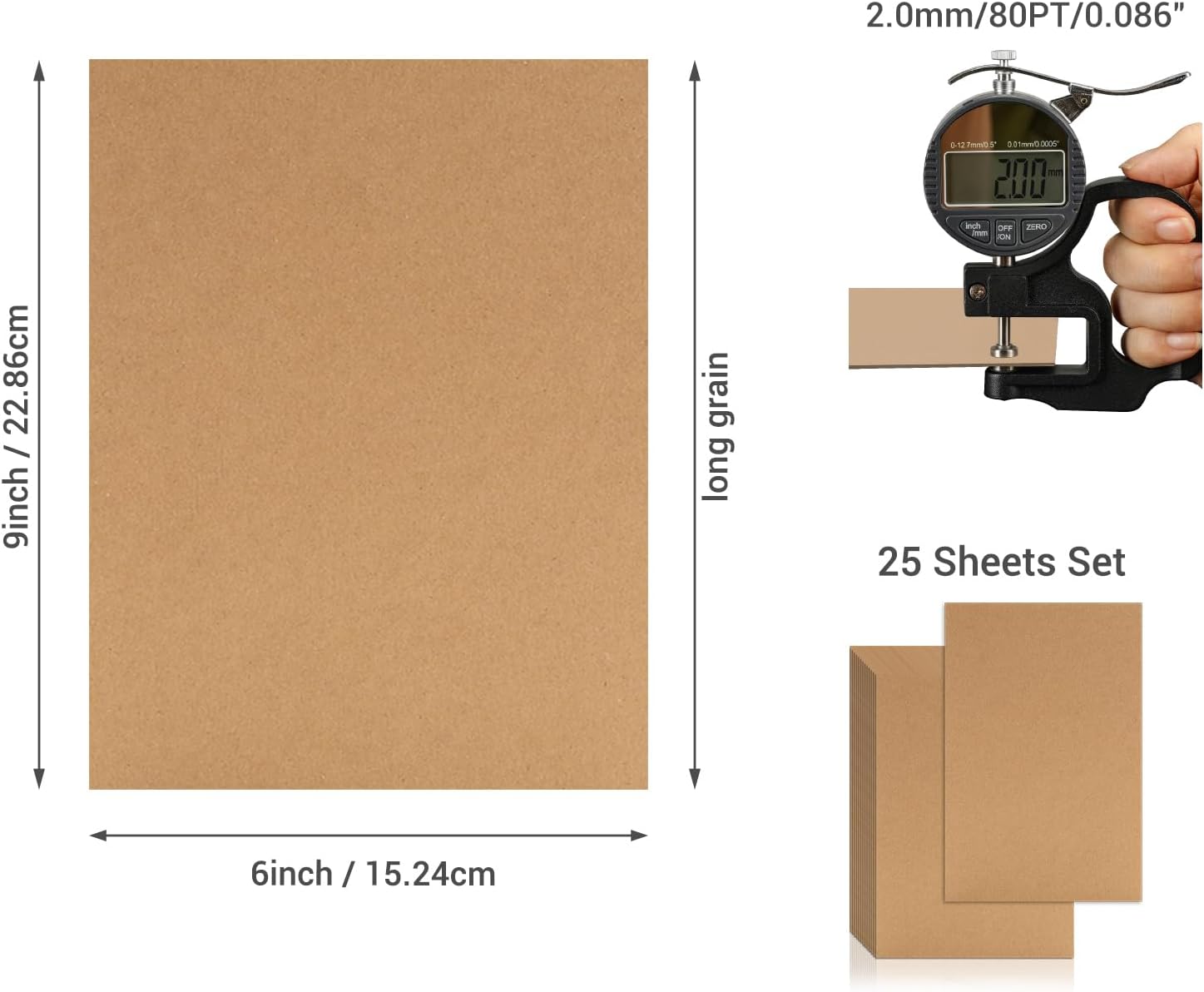 25 Pcs Book Board, Binder Board, Cover Board, Heavy Duty Chipboard for Book Binding, DIY Cardboard (Brown, 9 x 6 Inch 80PT)