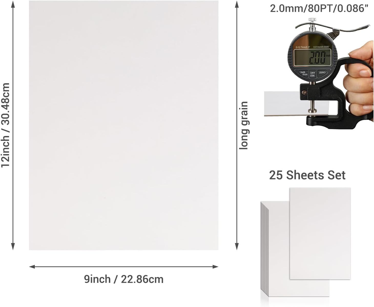 25 Pcs Book Board, Binder Board, Cover Board, Heavy Duty Chipboard for Book Binding, DIY Cardboard (White, 9 x 12 Inch 80PT)