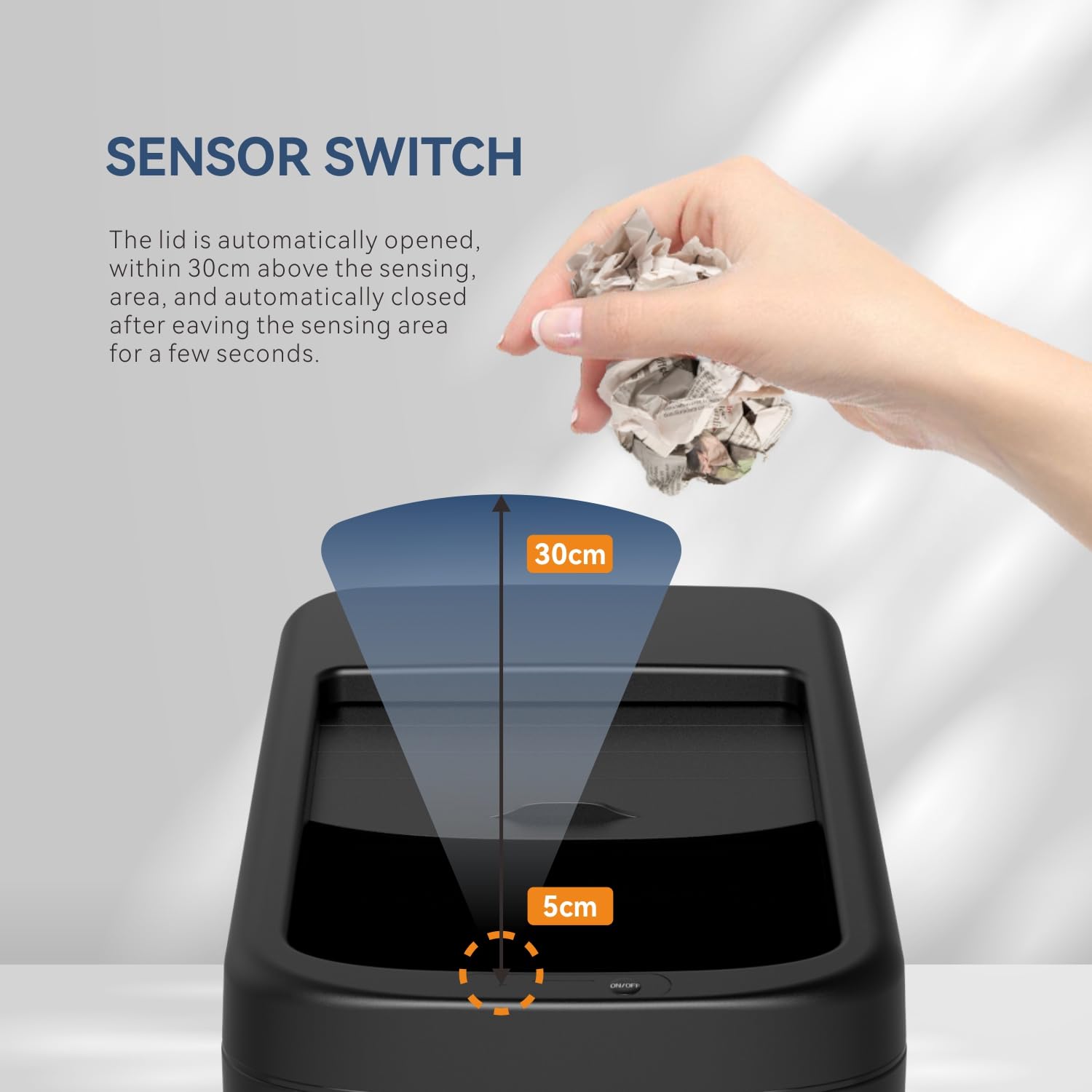 - 【Premium Motion Sensor Technology】: The touchless kitchen trash can features cutting-edge sensor technology that detects motion within inches, offering a truly hands-free operation. With the touchless operation, you can dispose of kitchen waste without touching the surface of the trash can, maintaining optimum hygiene and preventing cross-contamination.