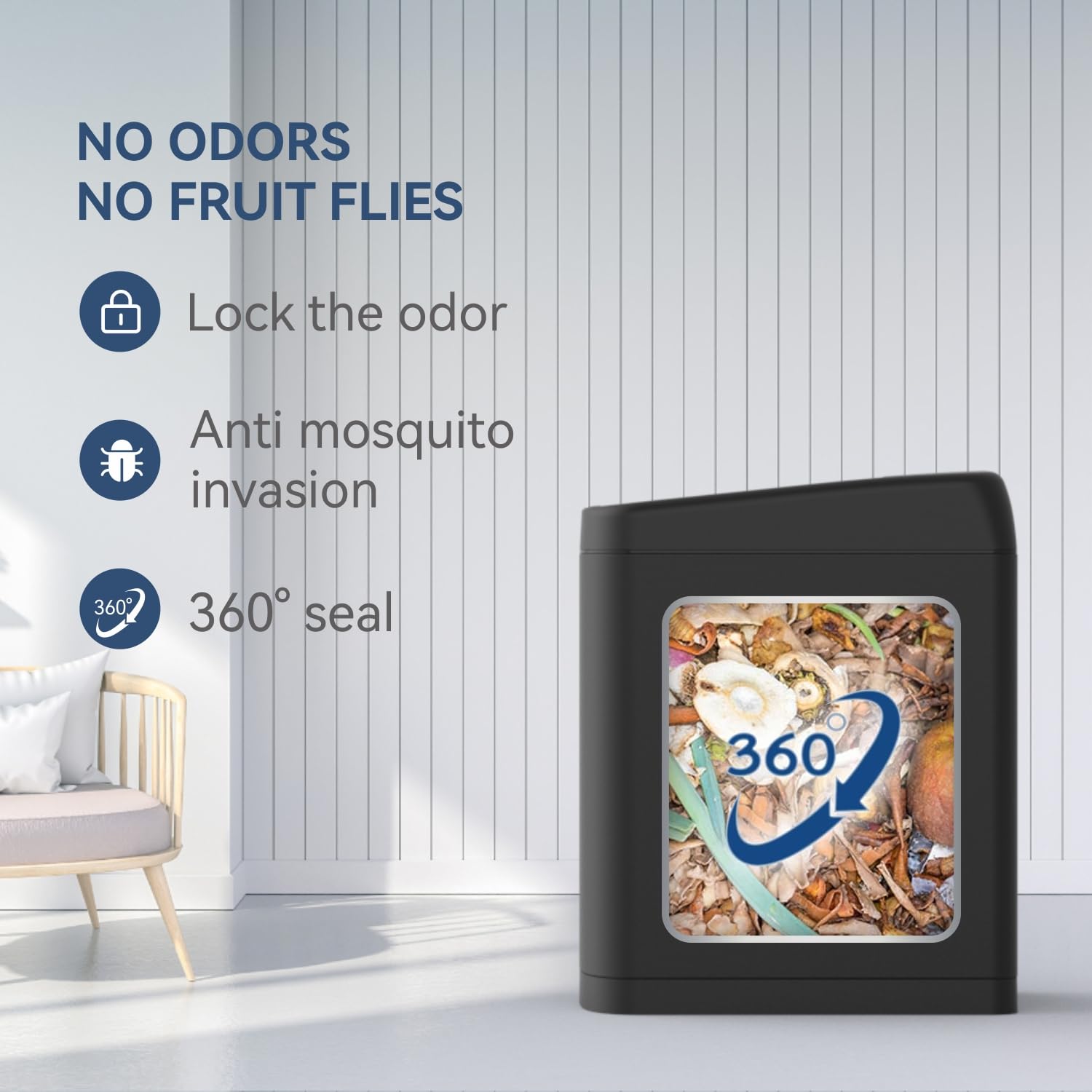 - 【Sleek Roll-Top Lid Design】 :The roll-top lid design not only keeps the trash hidden but also prevents unpleasant odors from escaping. The smooth opening and closing mechanism effortlessly seals in the odor, keeping your kitchen smelling fresh.